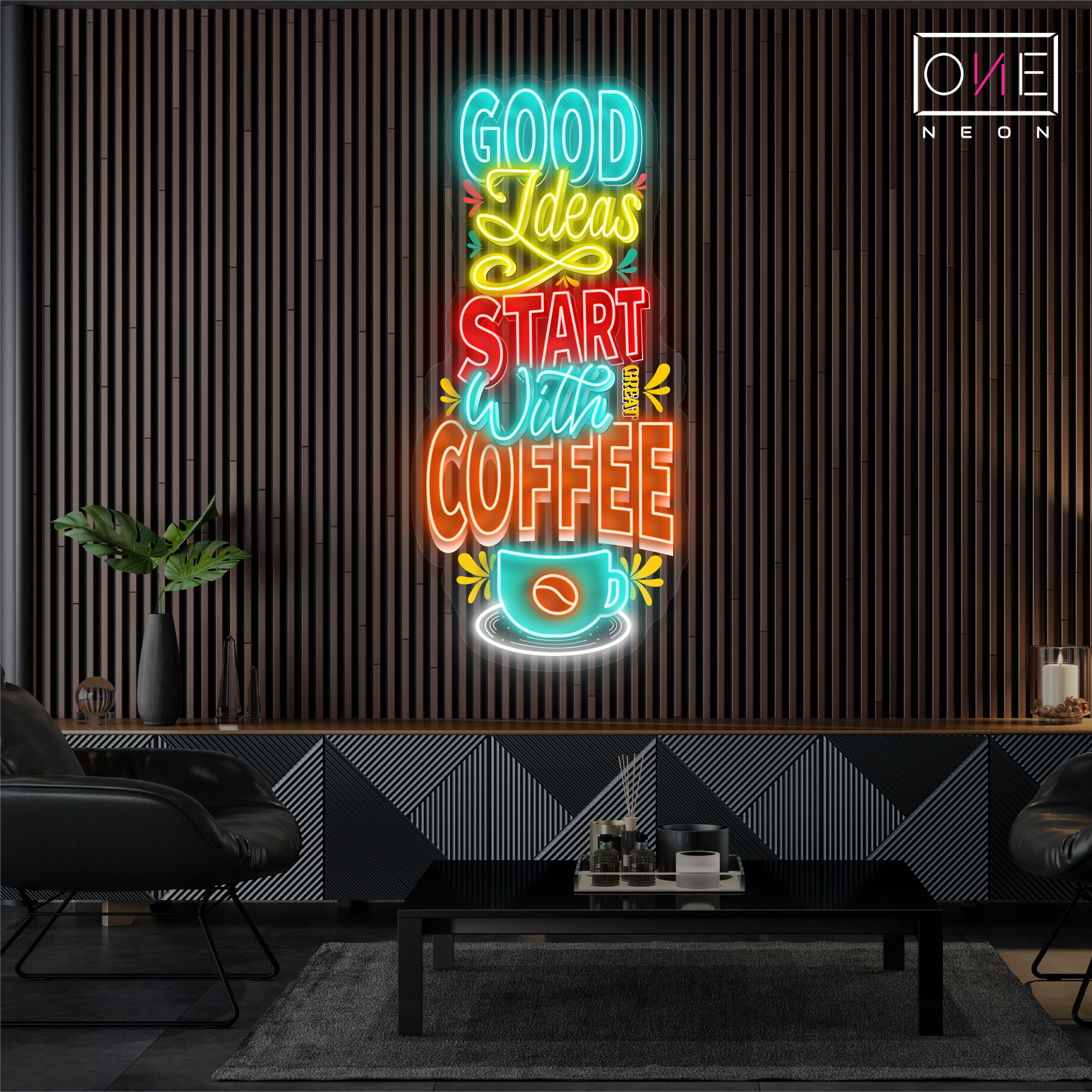 ☕💡 Good Ideas Start With Coffee LED Neon Sign is the perfect way to light up your space with creativity...