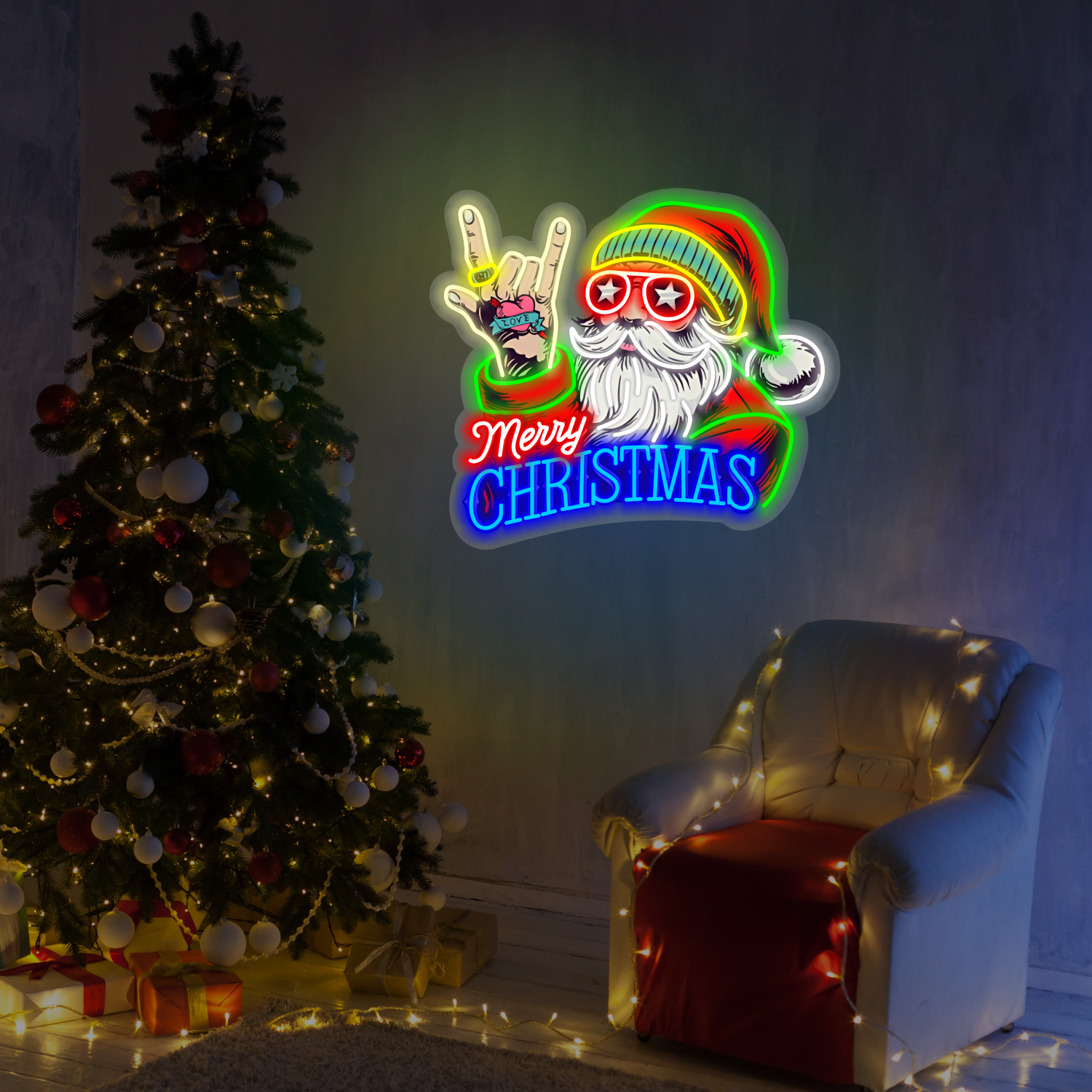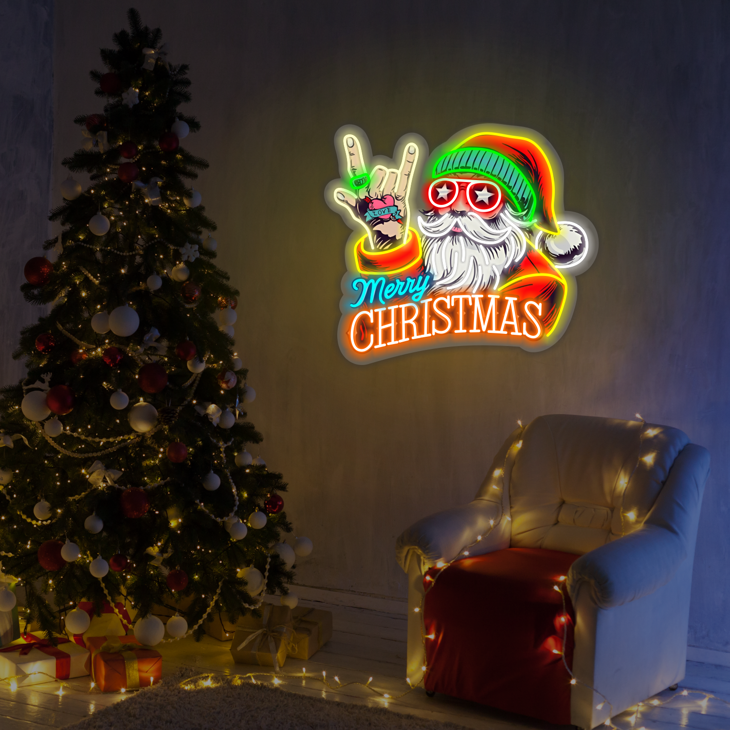 Turn up the holiday vibes with our Merry Christmas Rockin’ Santa LED Neon Sign! 🎸 Featuring Santa in cool shades...