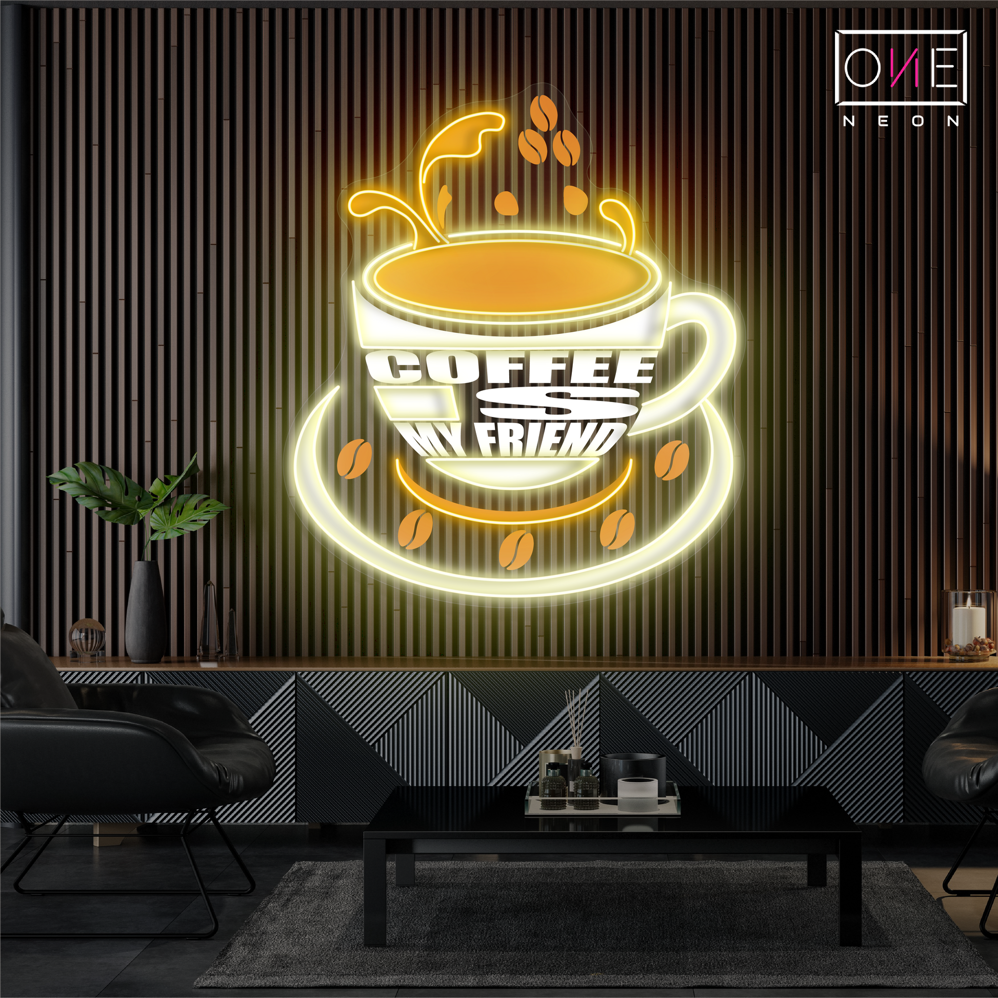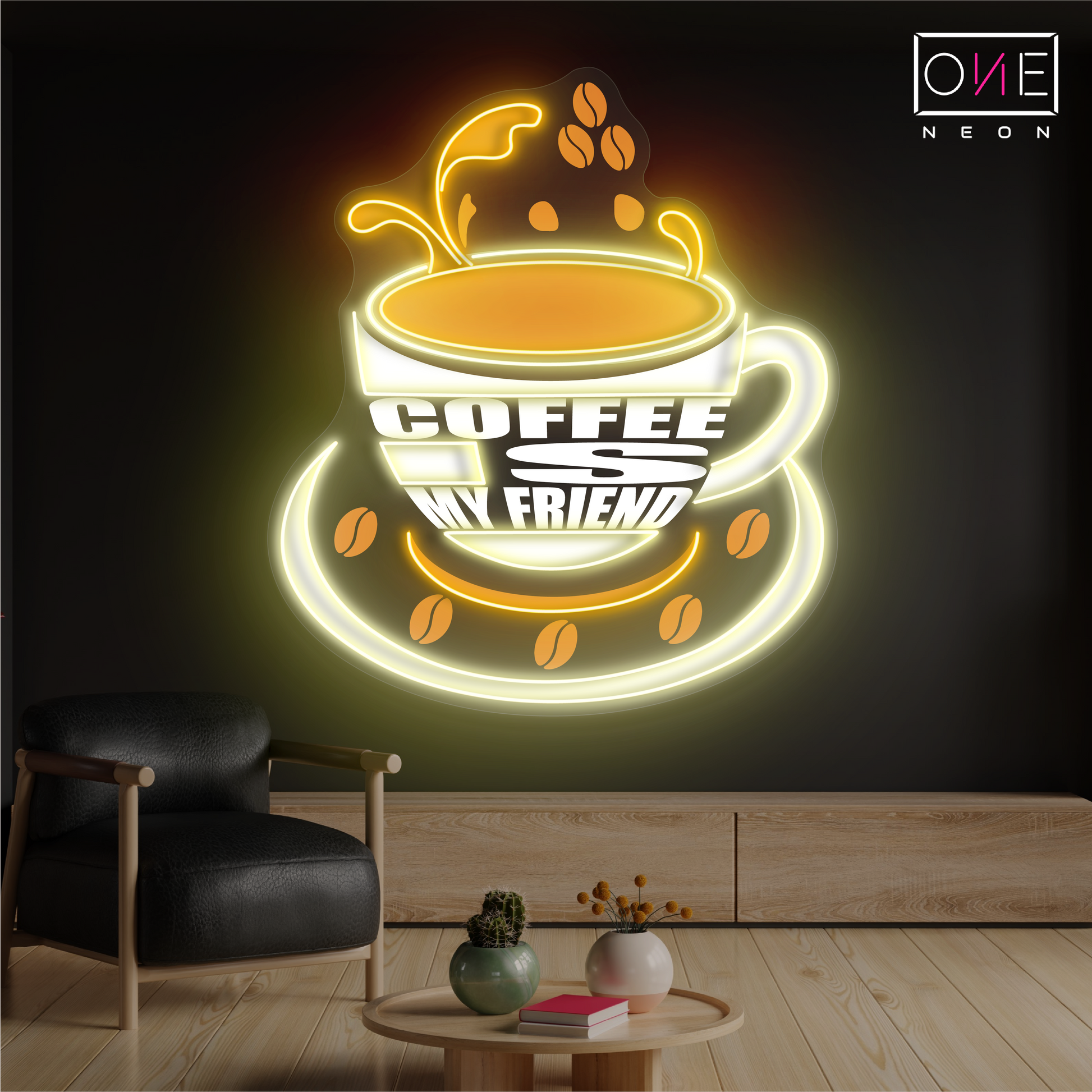☕ Coffee is My Friend 🌟—the perfect LED neon sign for coffee lovers! 🖤 This vibrant sign brings warmth and cozy vibes to your space with its fun, caffeine-filled message! ☕✨ Whether you're decorating your home, café, or office, this sign will be a daily reminder of your favorite companion—coffee! 🌿💡 Let it light up your coffee corner and fuel your day with positive energy! 🔥👑