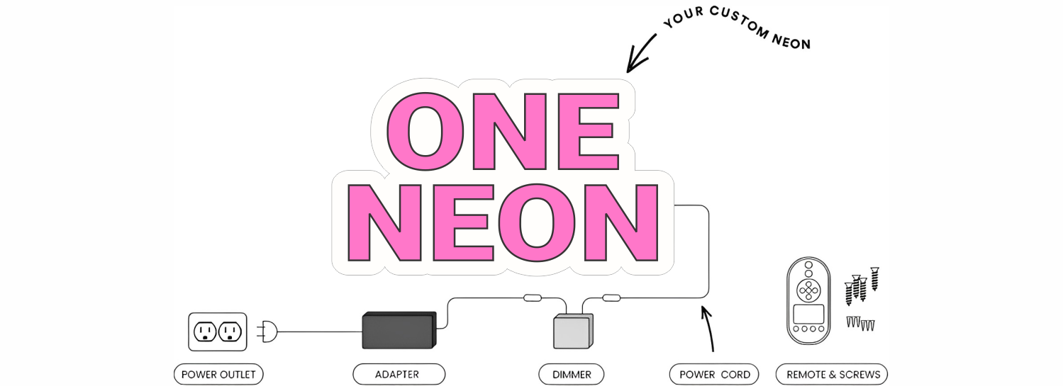 The DESIGN YOUR OWN customizer presents computer generated mock-ups that might not allow you to achieve your desired layout. If this is the case, please send us an email at contact@one-neon.com with your specifications and what you are trying to achieve and one of our lovely designers will have that design mocked-up and priced in no time.