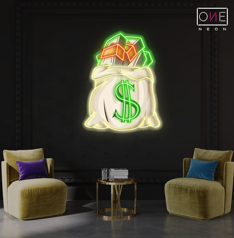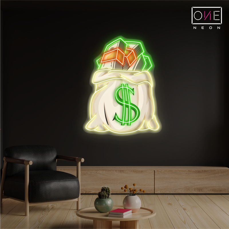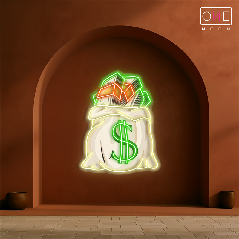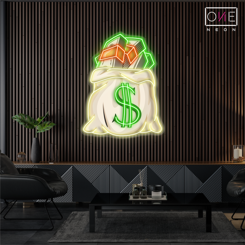 💰 Brighten up your space with our Money Bag Artwork LED Neon Sign – the perfect statement piece for entrepreneurs, dreamers, and anyone chasing success! This eye-catching neon sign, shaped like a money bag, adds a motivational vibe to offices, game rooms, and more. 💡 Made with premium LED technology, it's energy-efficient, long-lasting, and easy to install. 💸 Elevate your decor and bring in the glow of prosperity with this unique design!