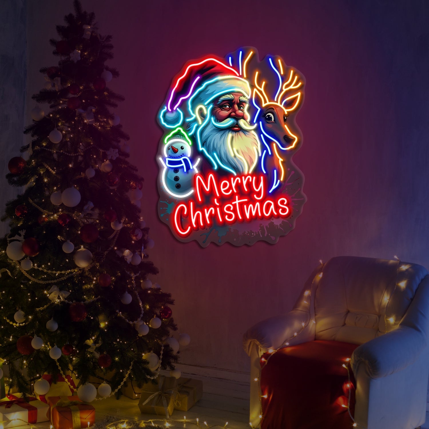 Santa Merry Christmas Artwork LED Neon Sign