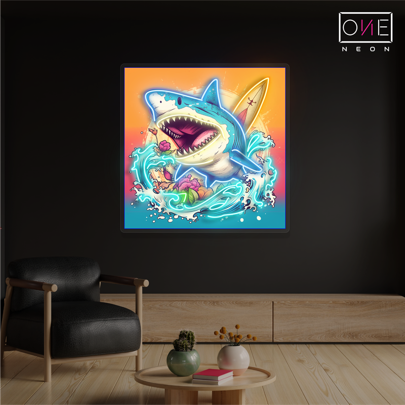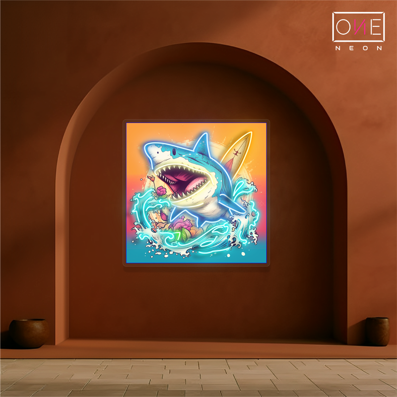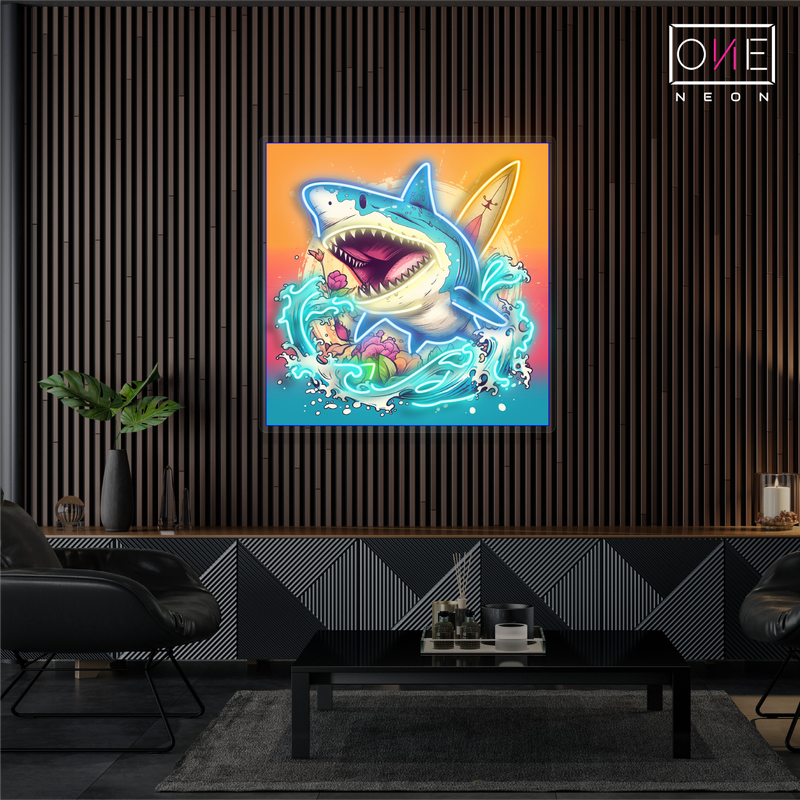 Surfing Shark Attack Artwork Led Neon Sign