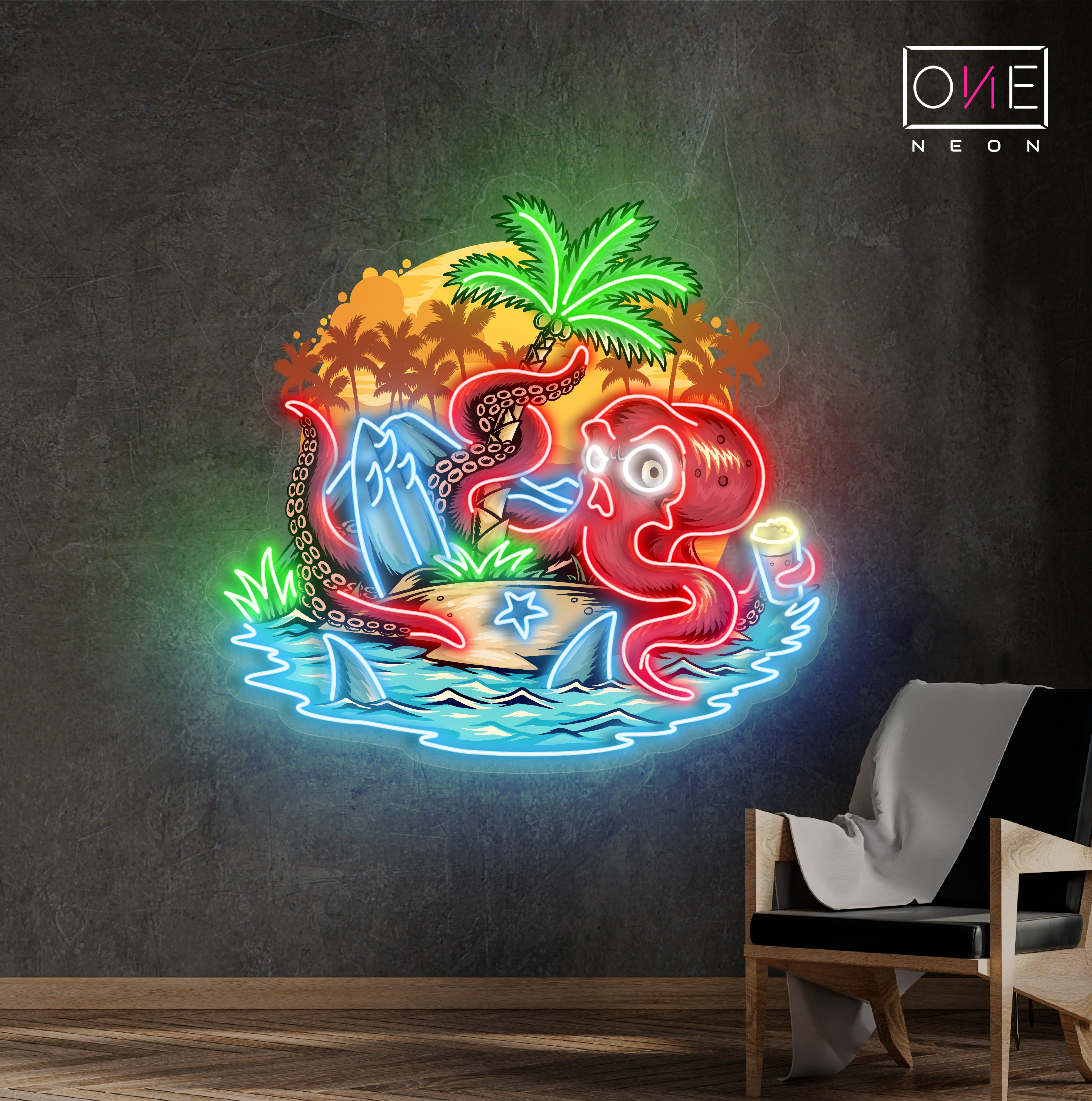 Octopus island artwork led neon sign