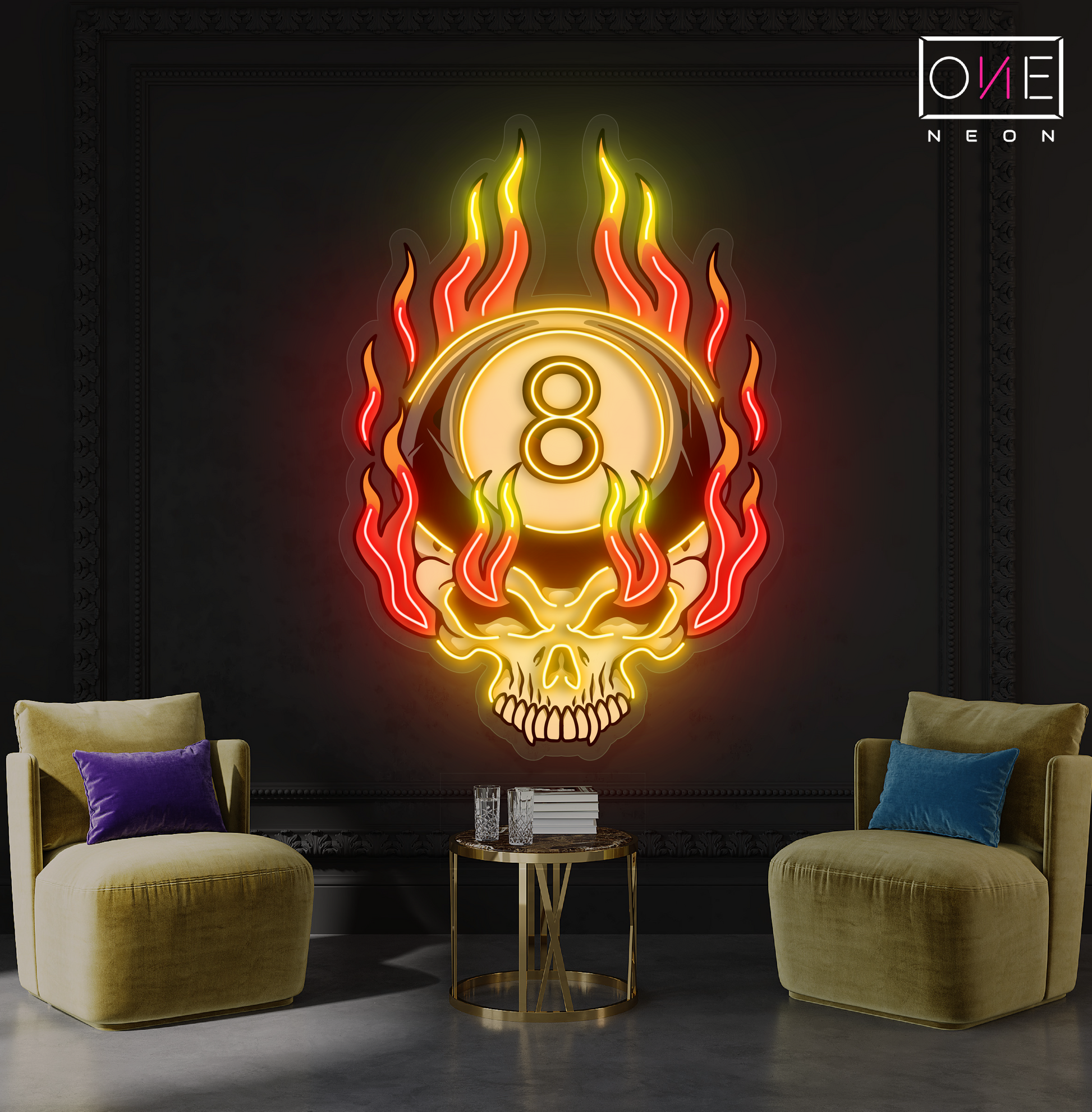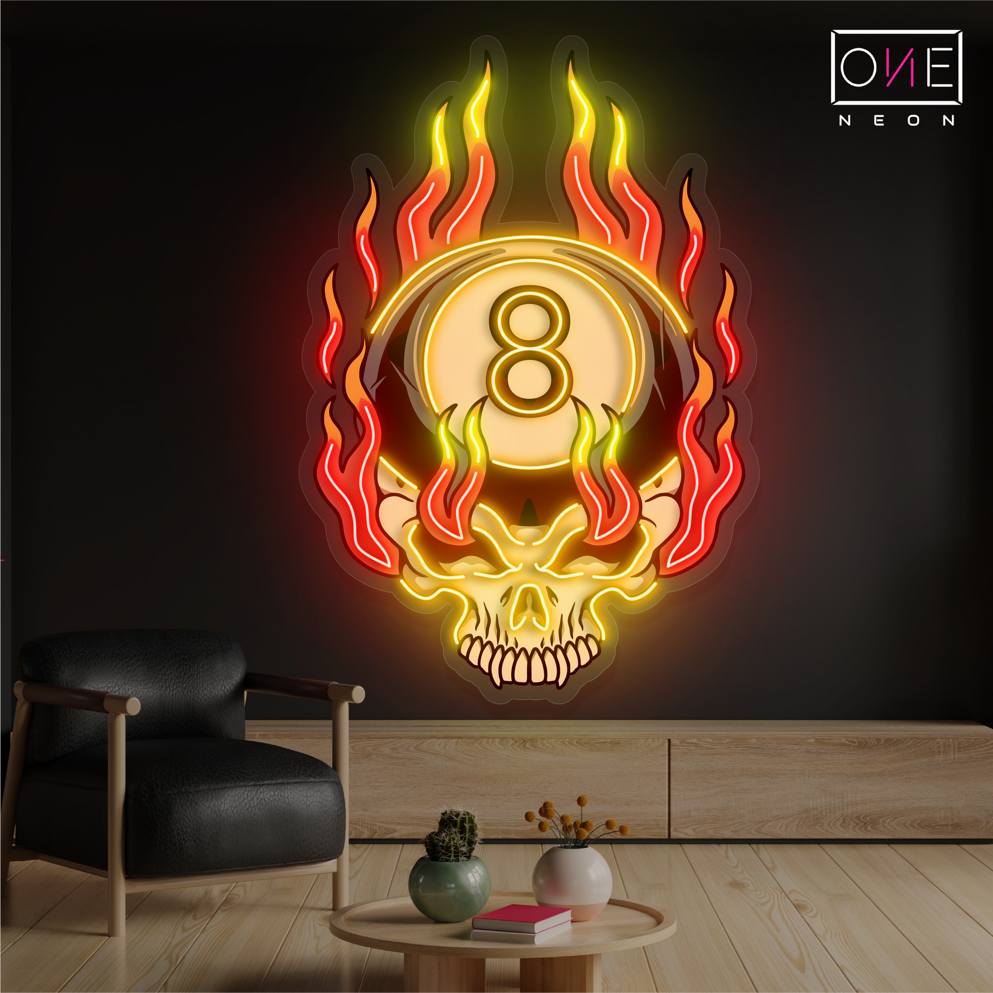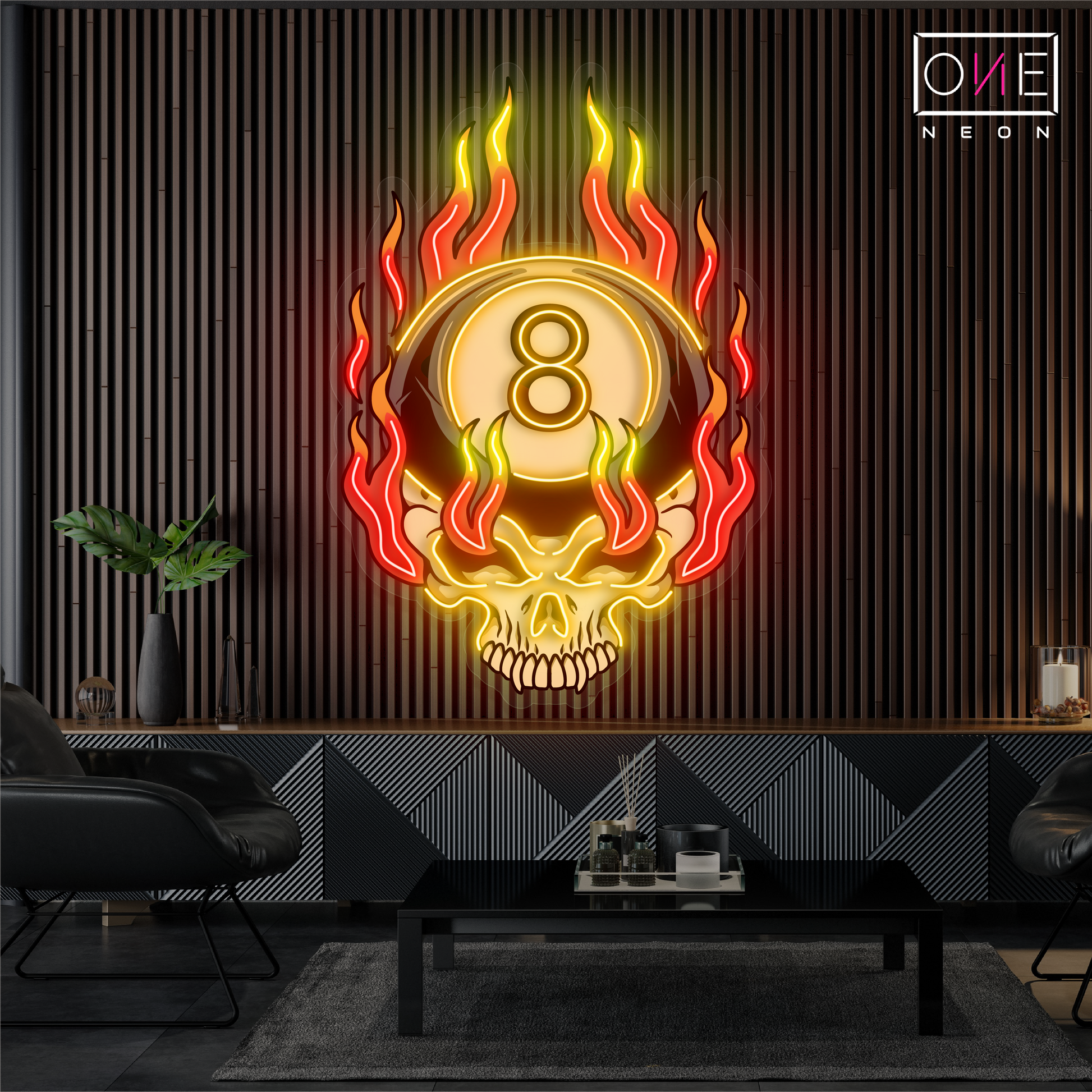 🎱💀 8 Ball Skull Artwork LED Neon Sign 💀🎱