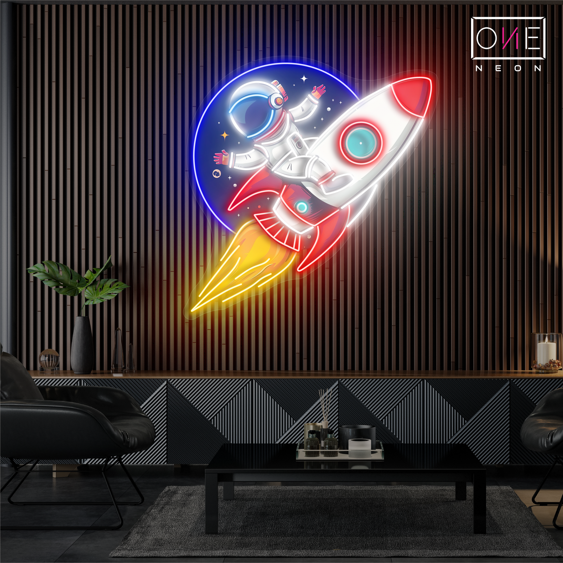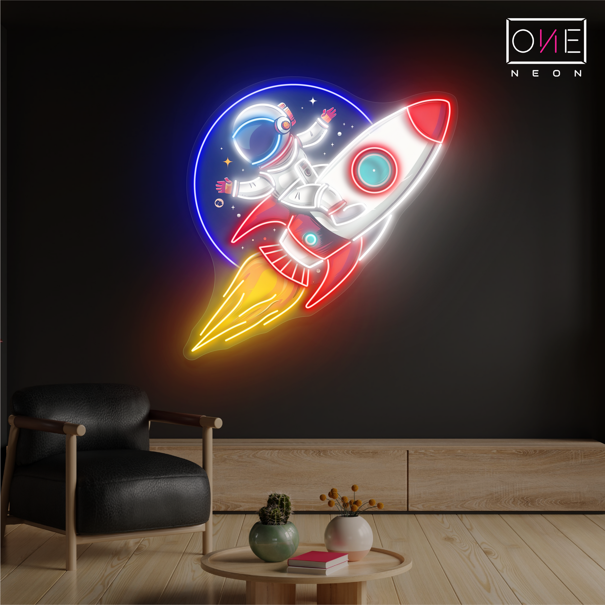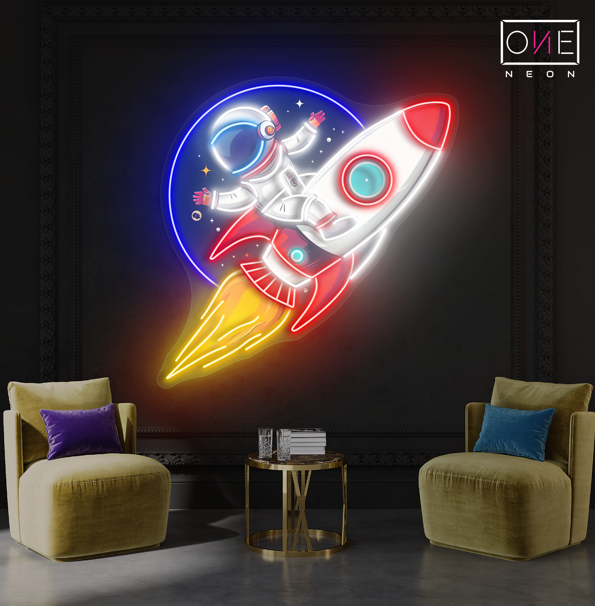 🚀 Blast Off with Our Astronaut Rocket Artwork LED Neon Sign! 🌌