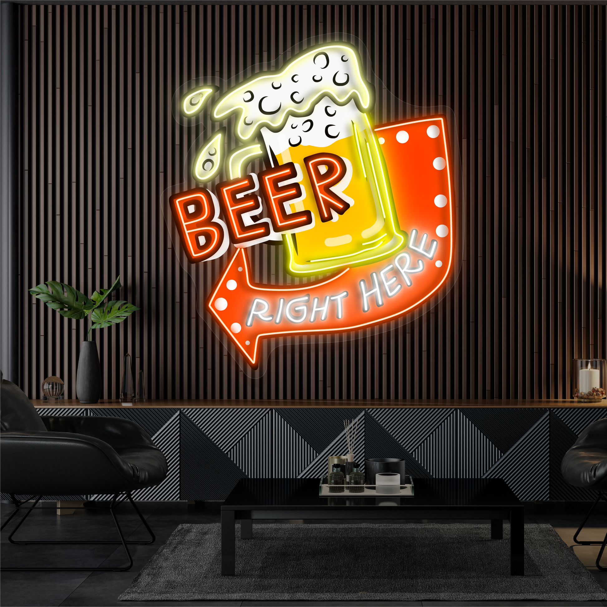 Looking to add some fun vibes to your bar, home, or man cave? Our Beer Right Here LED Neon Sign is the perfect way to point everyone to the good times! 🍺✨ Bright, bold, and eye-catching, this neon sign ensures no one misses where the cold brews are served. Perfect for pubs, breweries, or any beer lover's space. Cheers to that! 🍻🎉