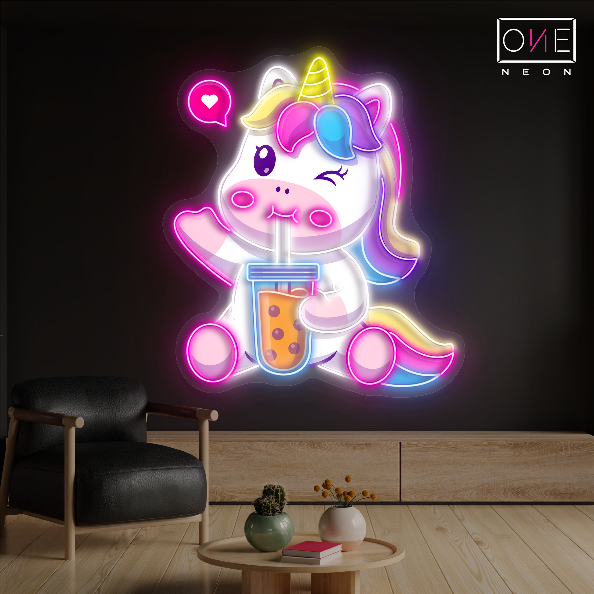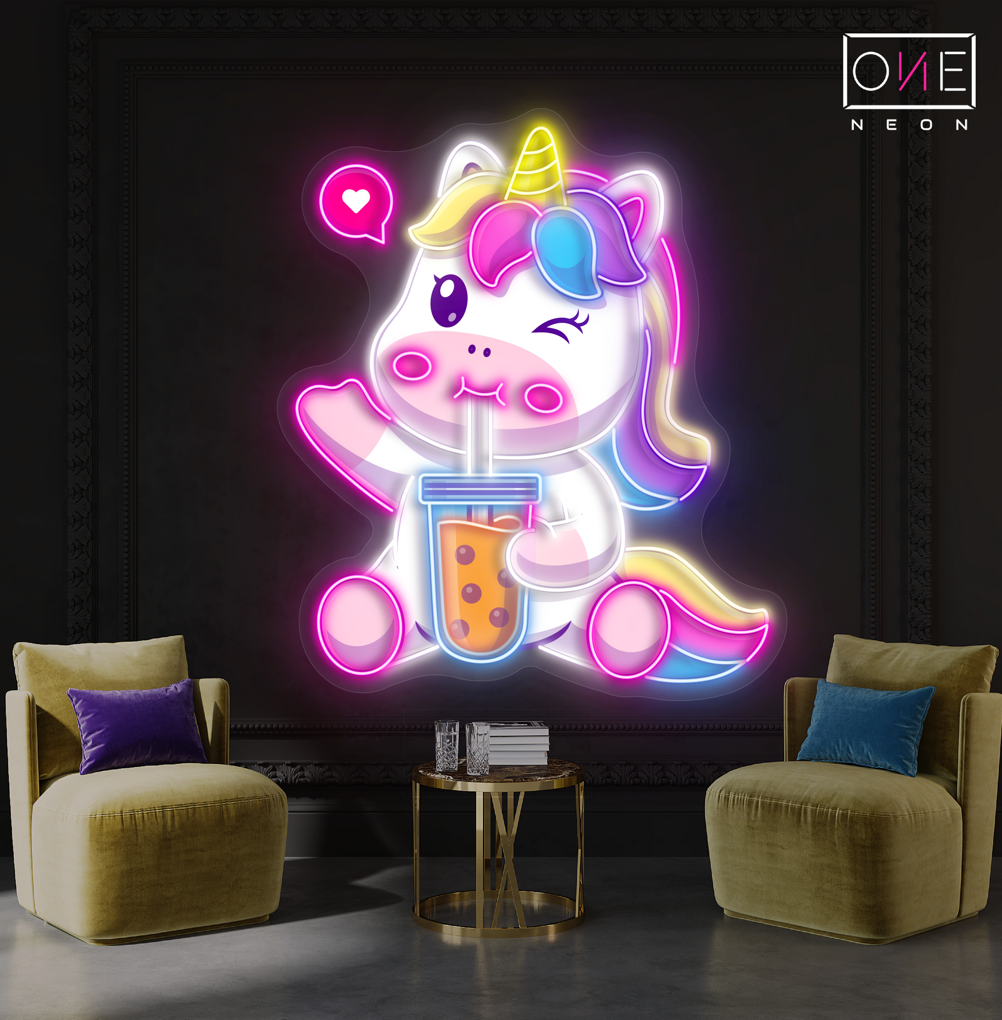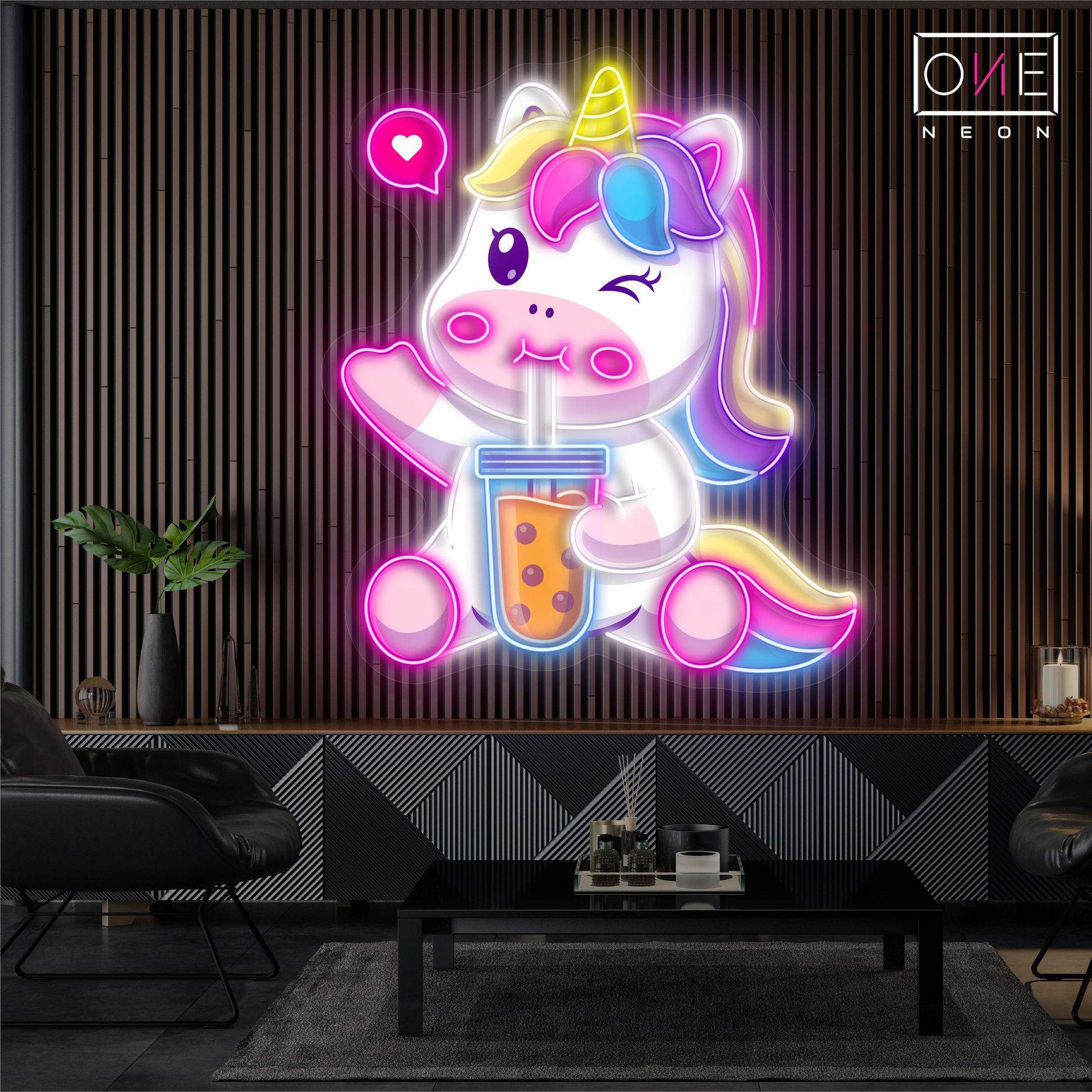 Bubble Tea Unicorn Artwork Led Neon Sign