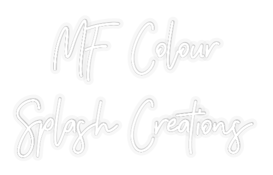Font/Color: MF (Font: Wild Script, Color: Blue) Colour (Font: Wild Script, Color: Blue) Splash (Font: Wild Script, Color: Blue) Creations (Font: Wild Script, Color: Blue)