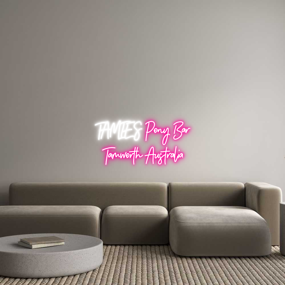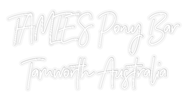 Font/Color: TAMIE’S (Font: Wild Script, Color: RGB (+30%)) Pony (Font: Wild Script, Color: Pink) Bar (Font: Wild Script, Color: Pink) Tamworth (Font: Wild Script, Color: Pink) Australia (Font: Wild Script, Color: Pink)