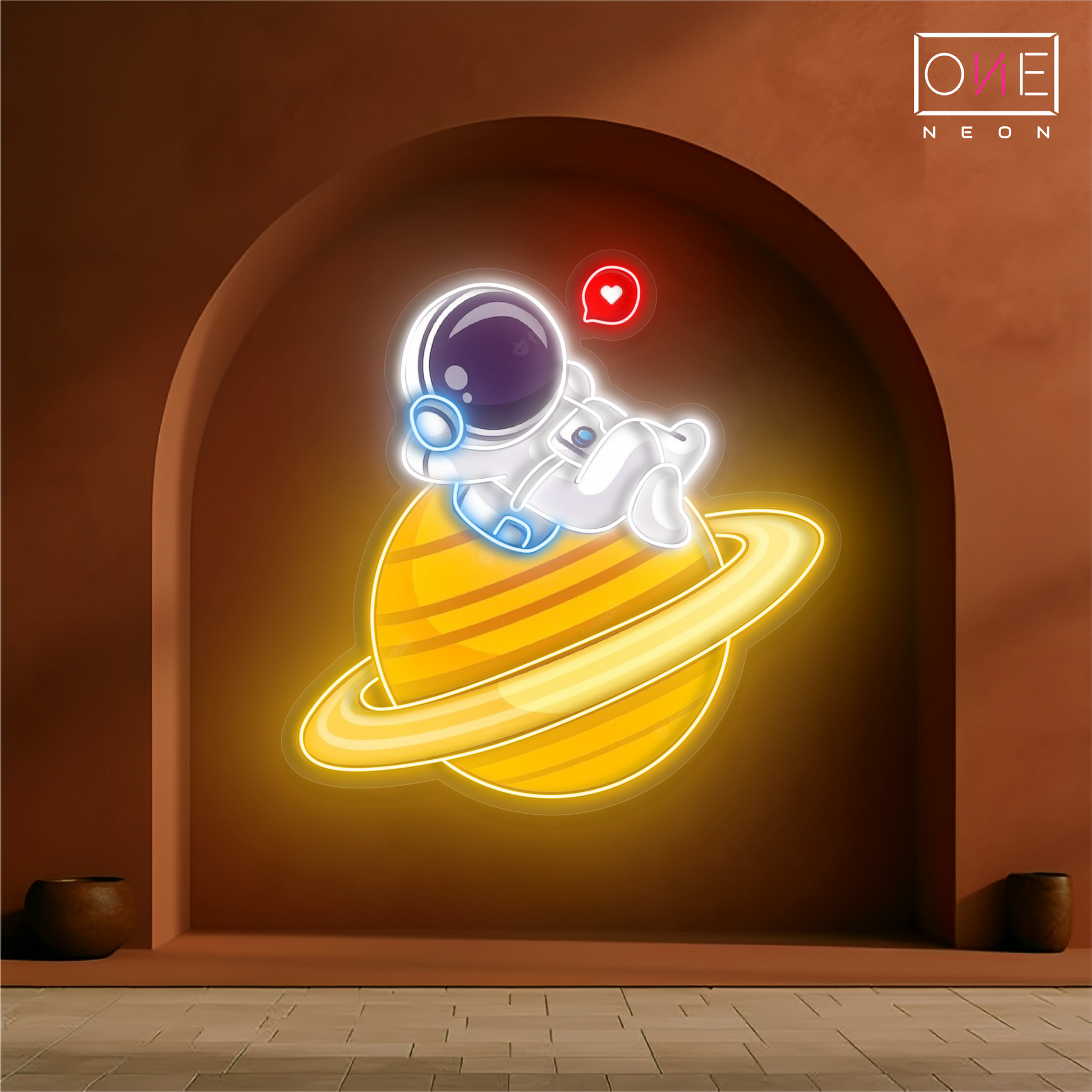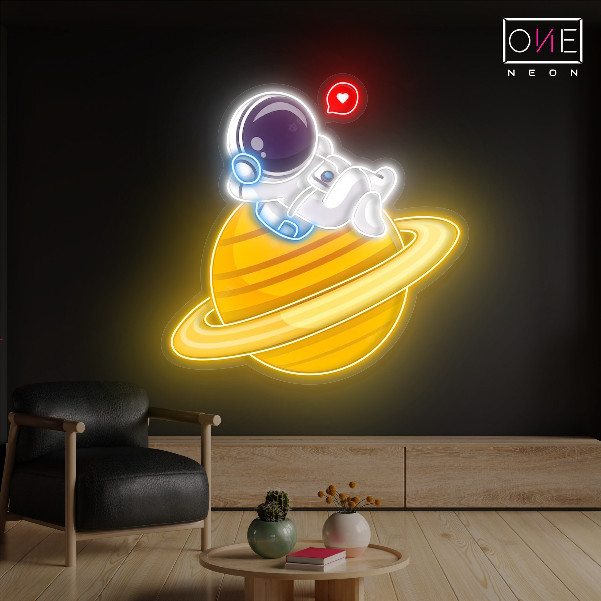 This delightful neon sign features an adorable astronaut enjoying a chill in outer space. Perfect for kids' rooms, game zones, or any space lover's corner, it brings a whimsical vibe and a pop of color to your décor. 🌈💫