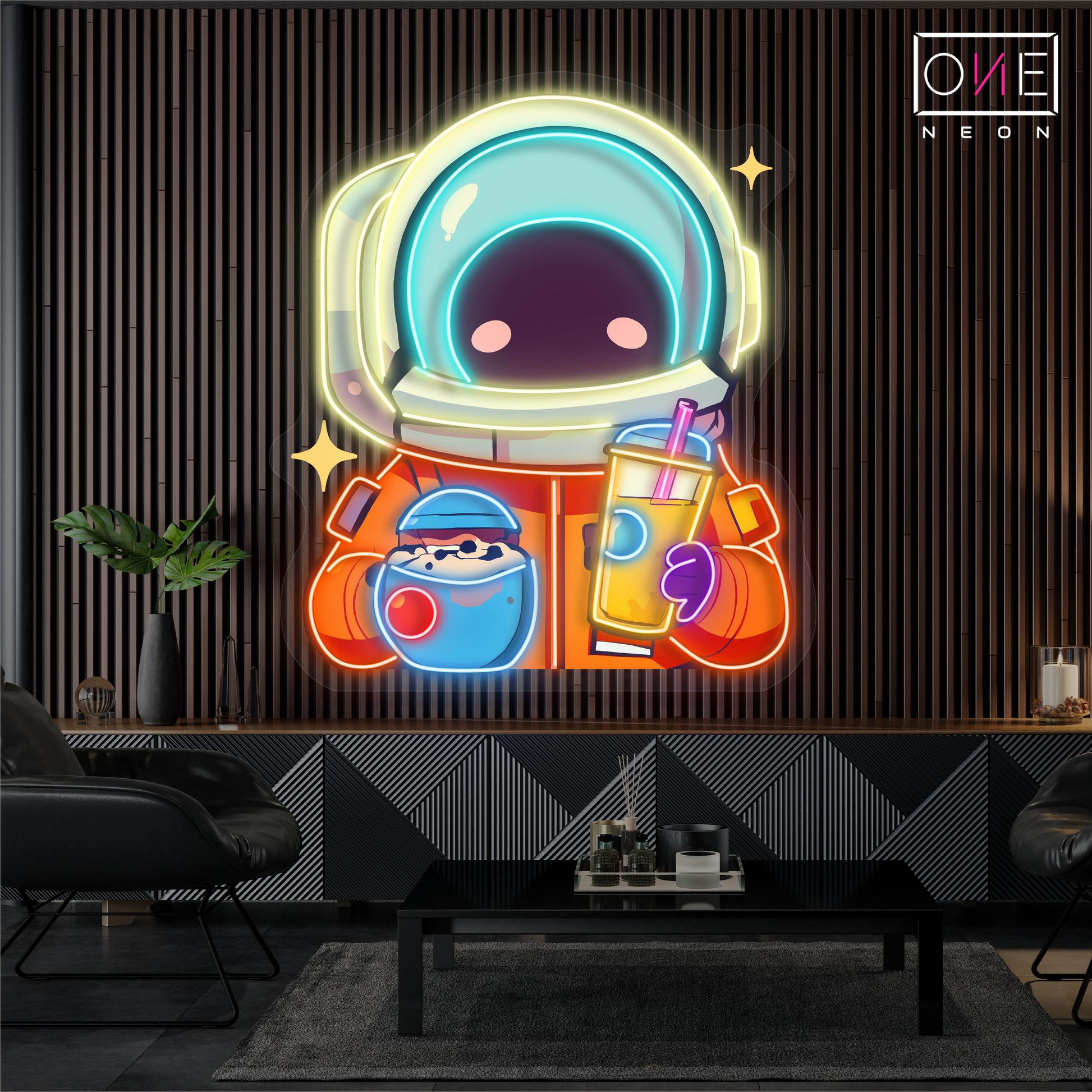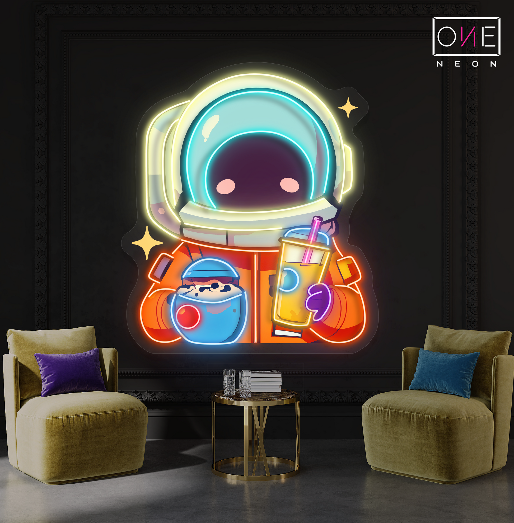 Cute Astronaut Drink Milk Tea Artwork Led Neon Sign