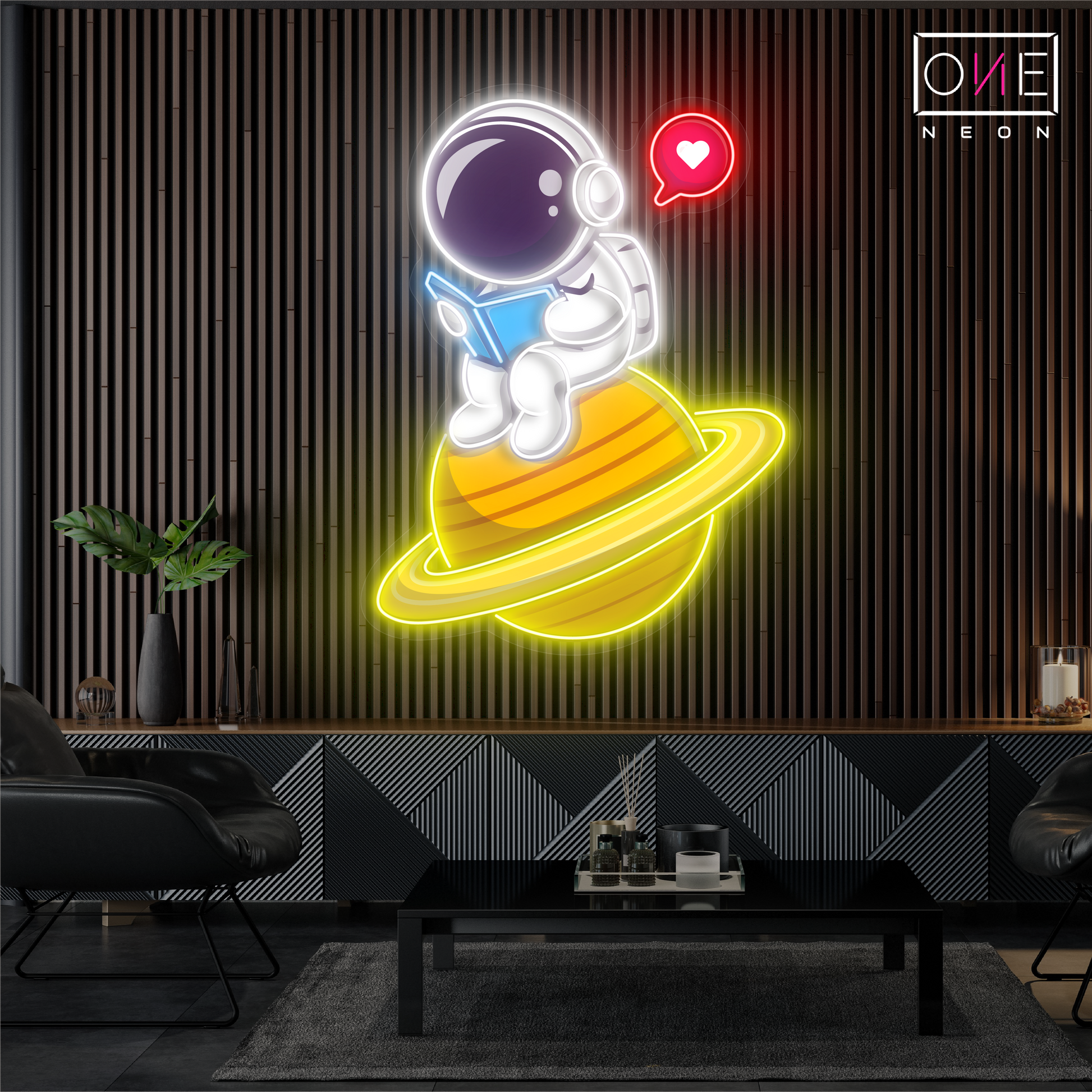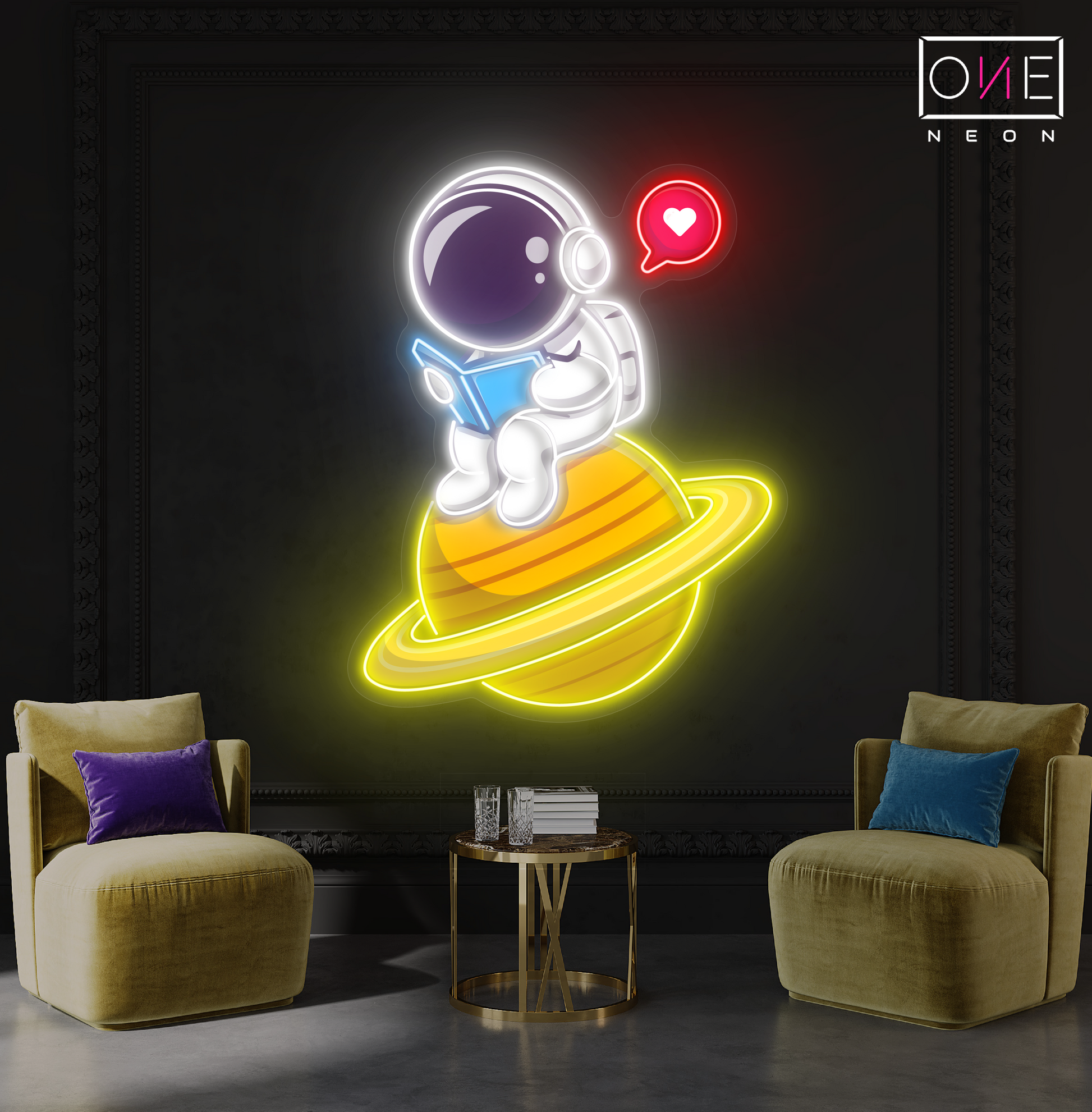 Cute Astronaut Reading Artwork Led Neon Sign