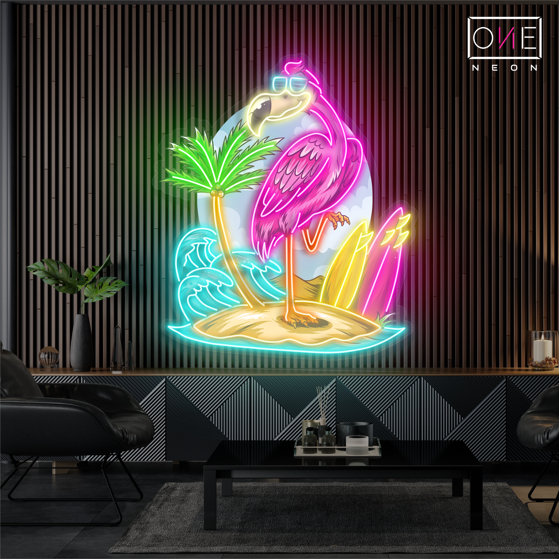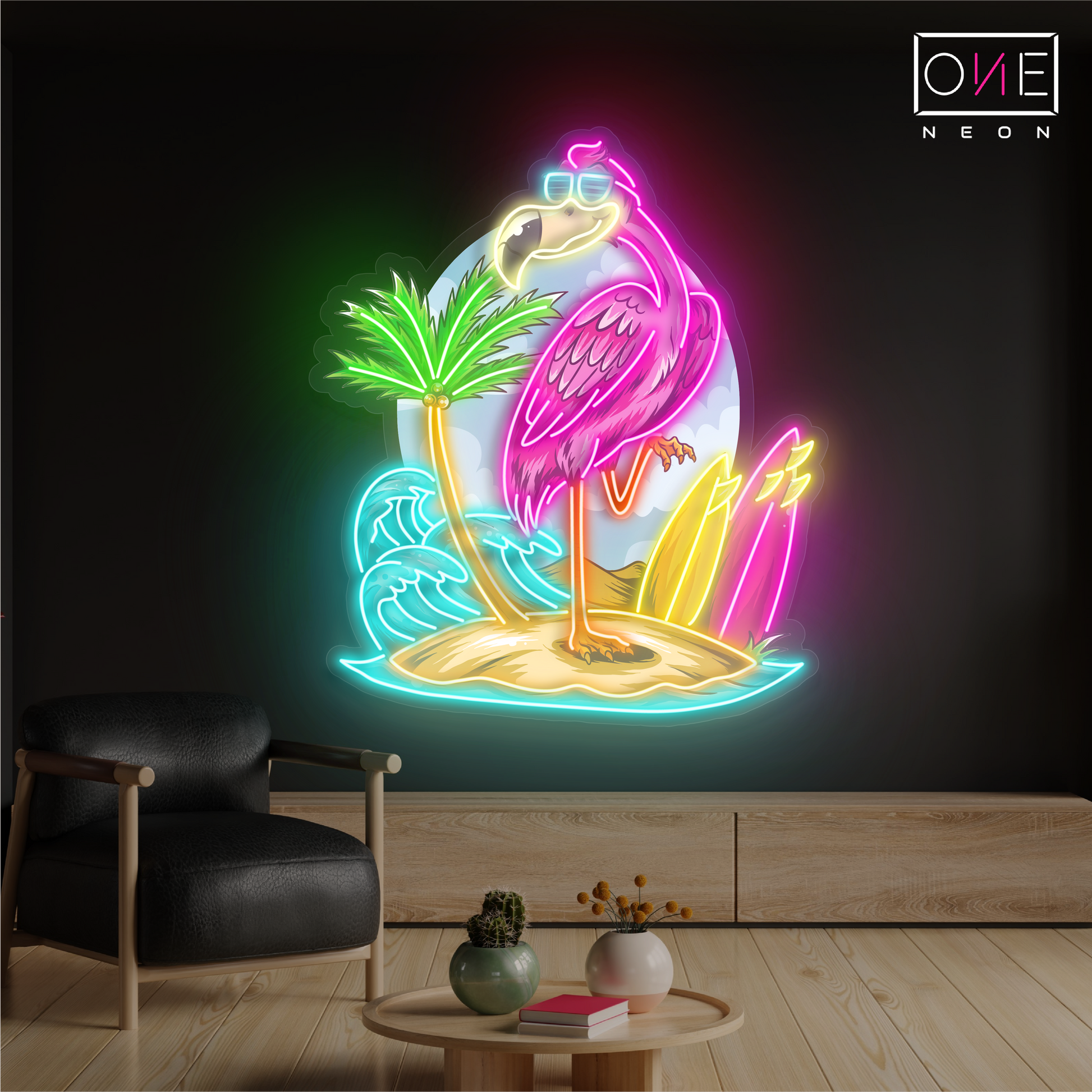 🌴✨ Flamingo Island Artwork LED Neon Sign ✨🌴