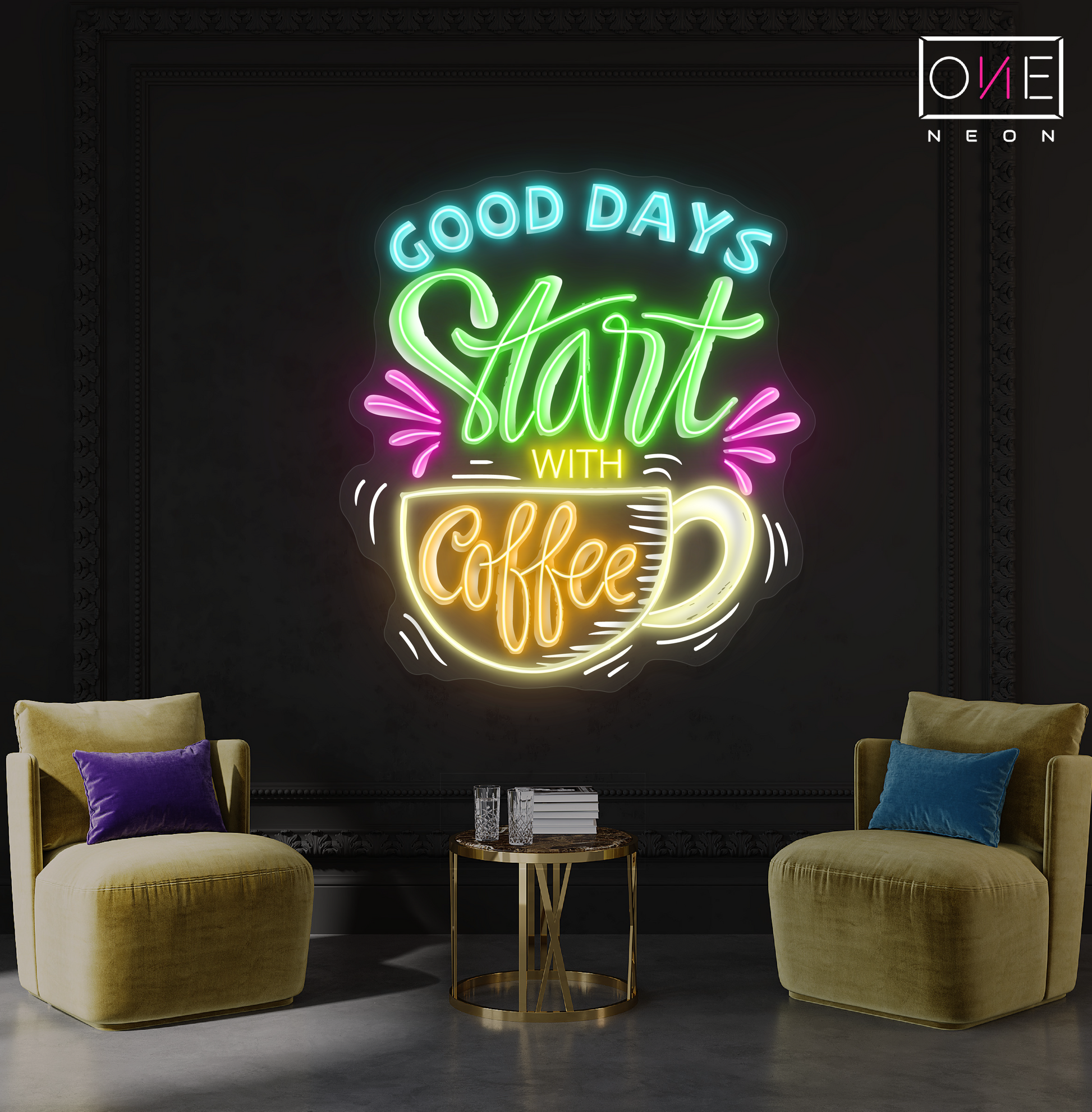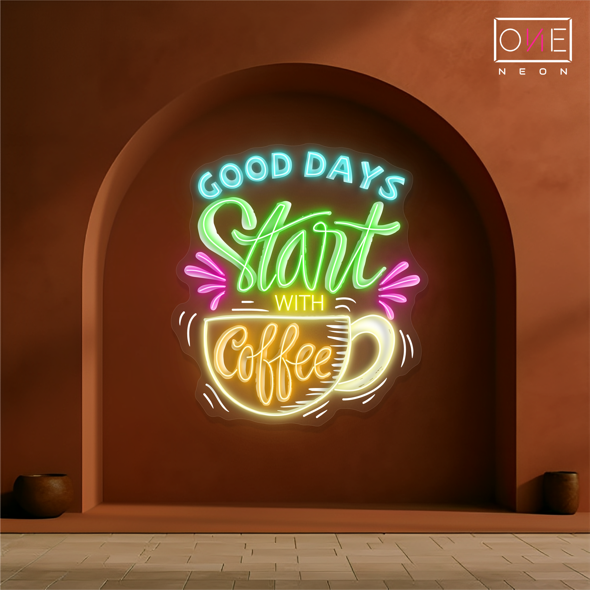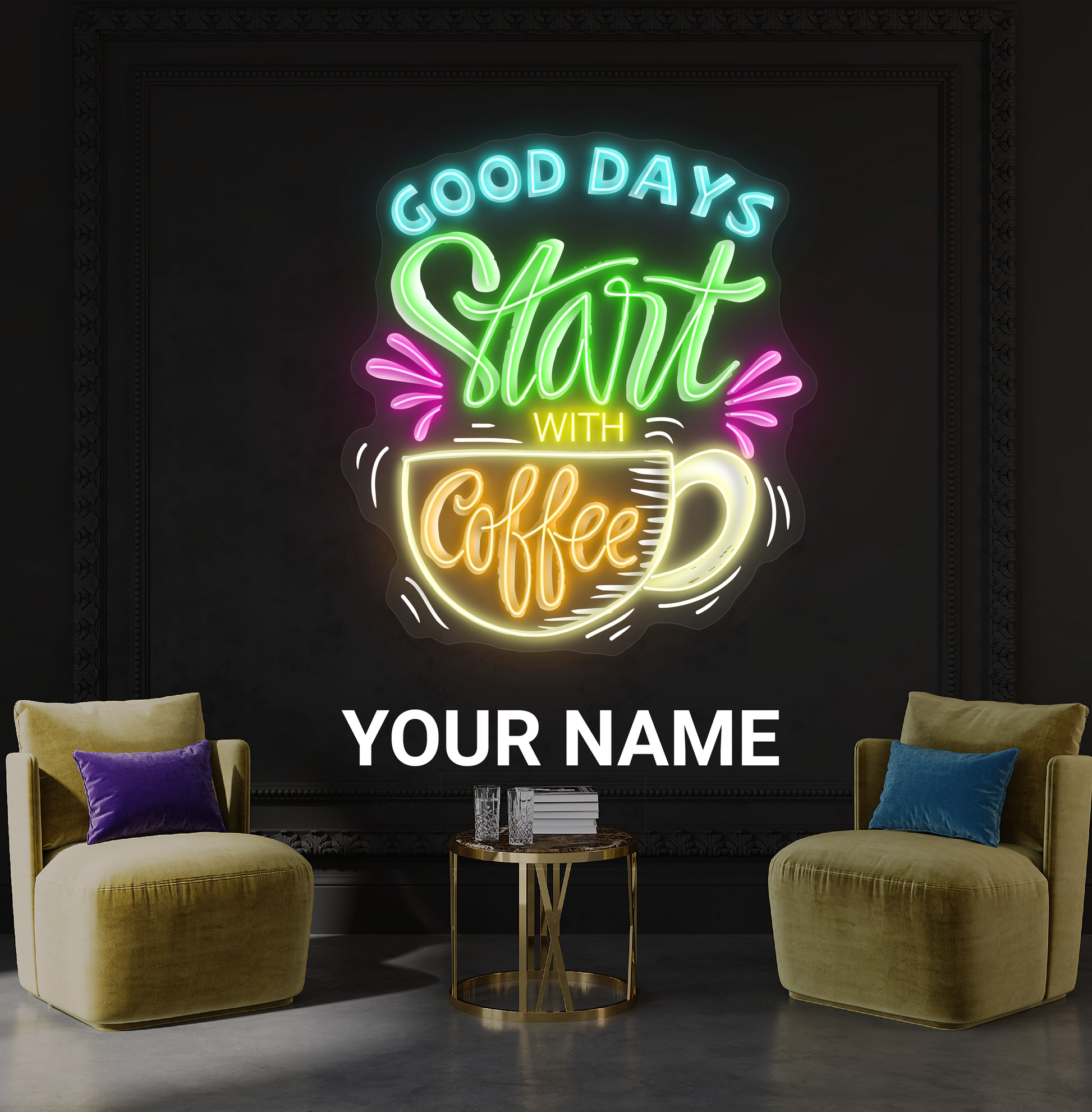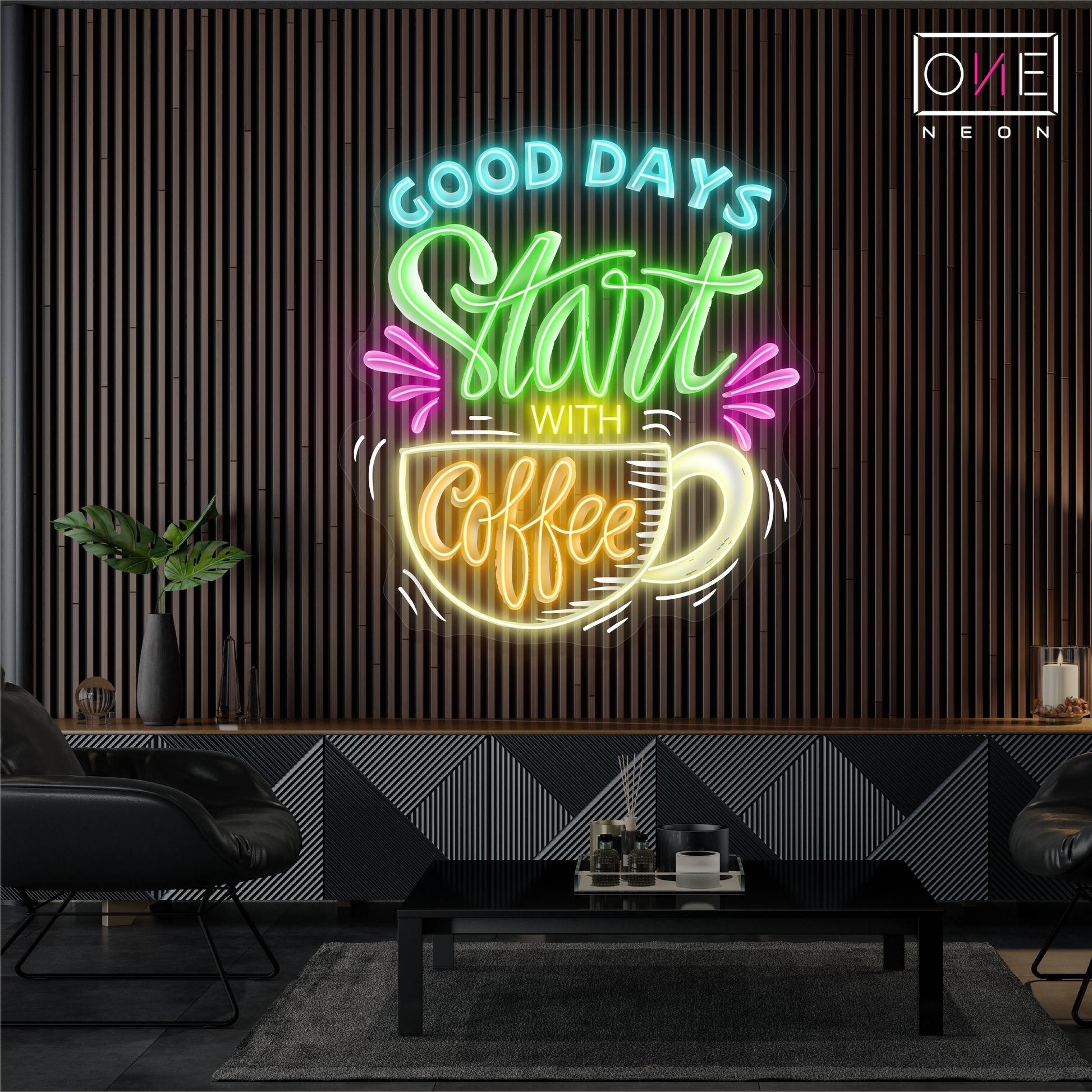☕ Good Days Start With Coffee 🌞 LED Neon Sign is the perfect way to kickstart your mornings! Whether you’re a coffee lover 🧋 or just need that daily caffeine boost to power through, this vibrant sign adds a cozy, energizing vibe to any space. Great for kitchens, cafés, or coffee corners at home! 💫 Add a little glow to your day and let your mornings shine with this stylish, custom-made artwork. ✨