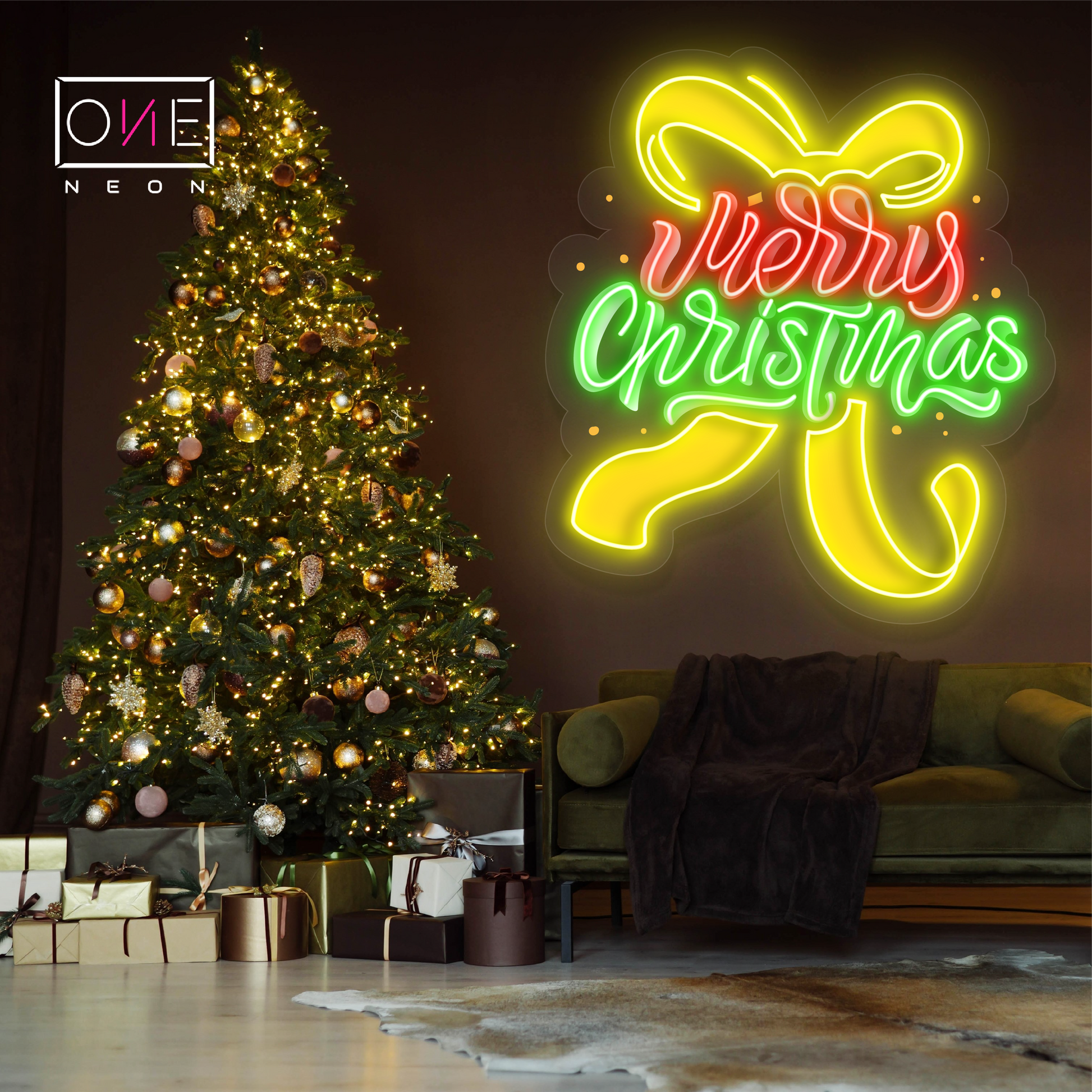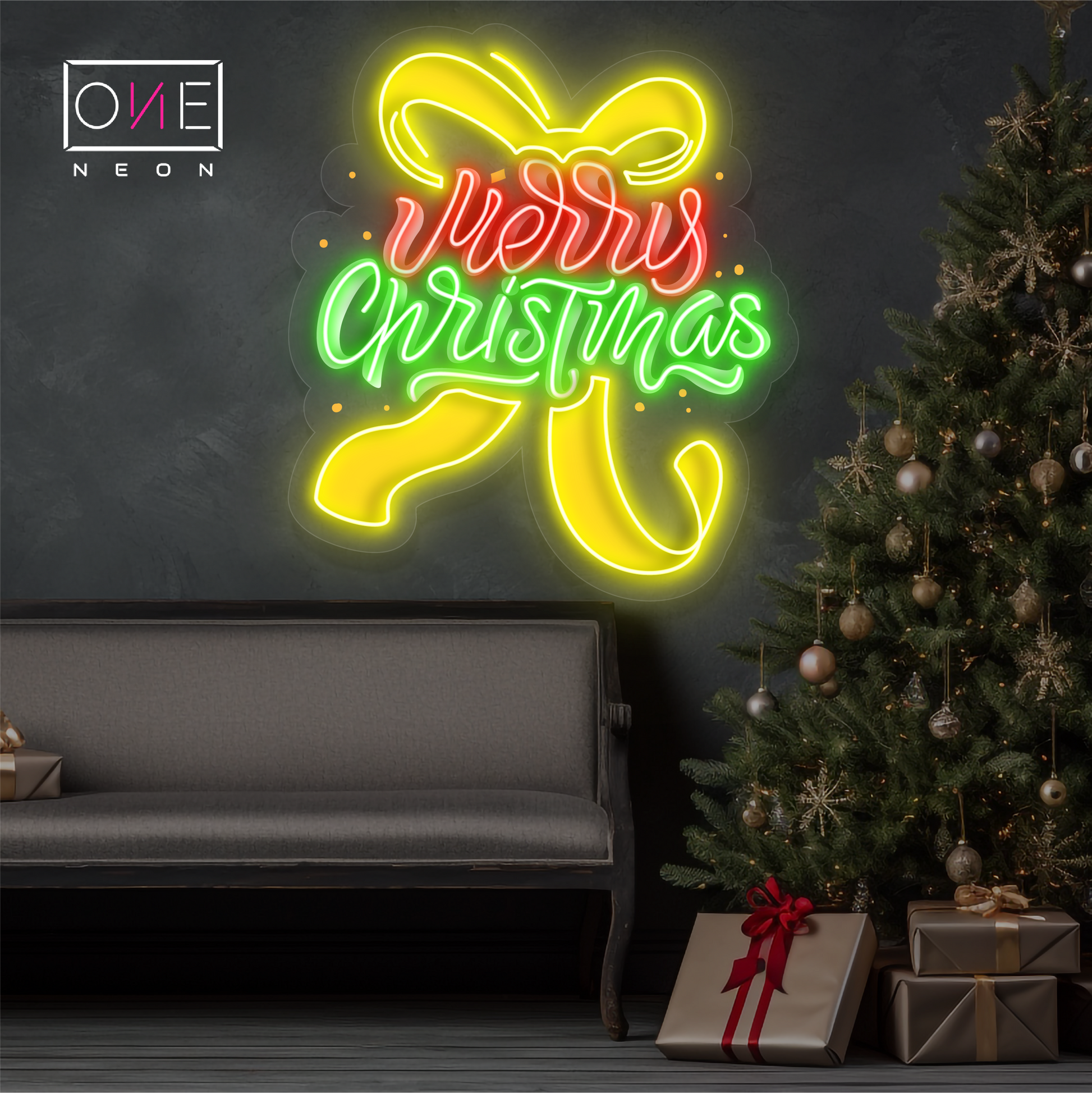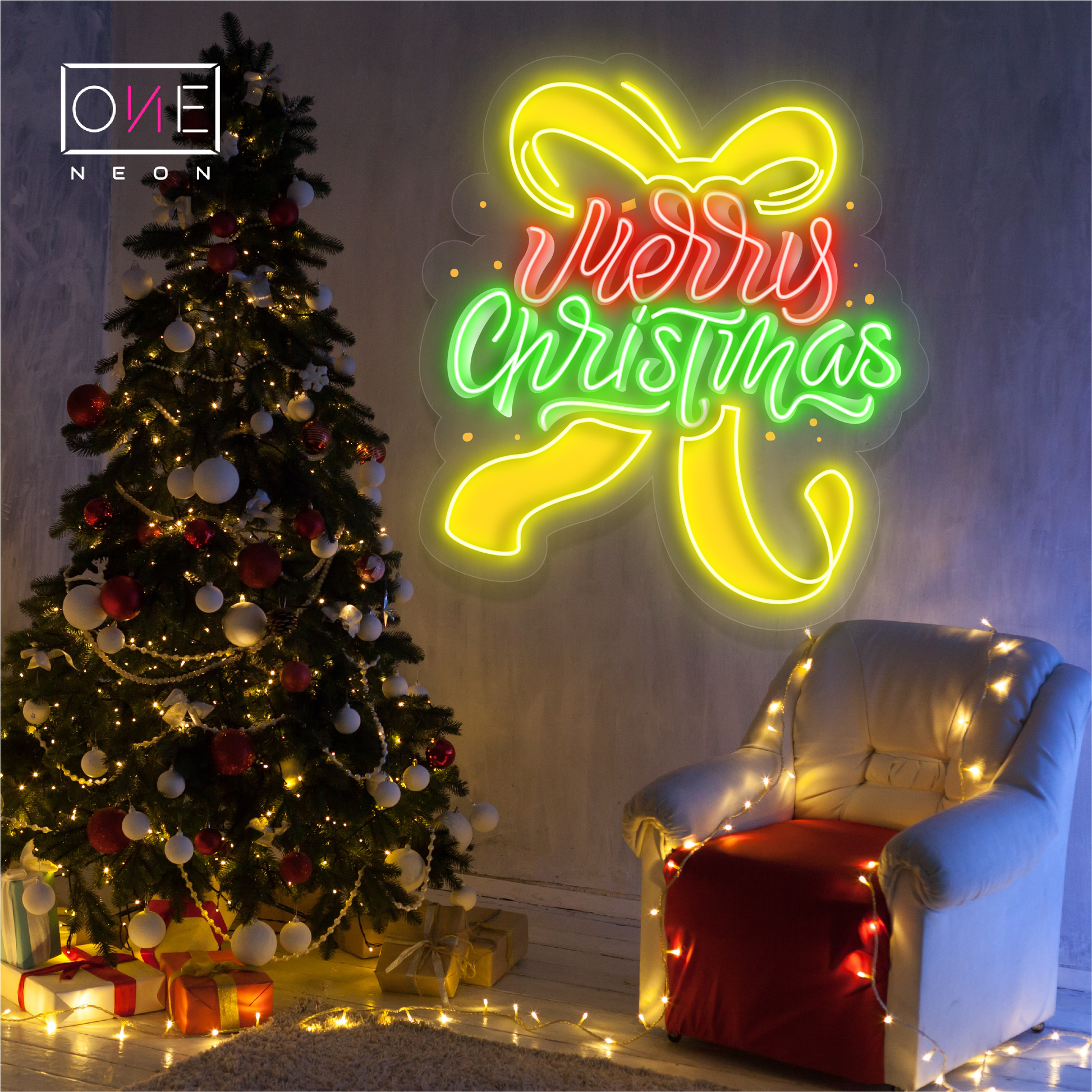 Merry Christmas Ribbon Artwork Led Neon Sign