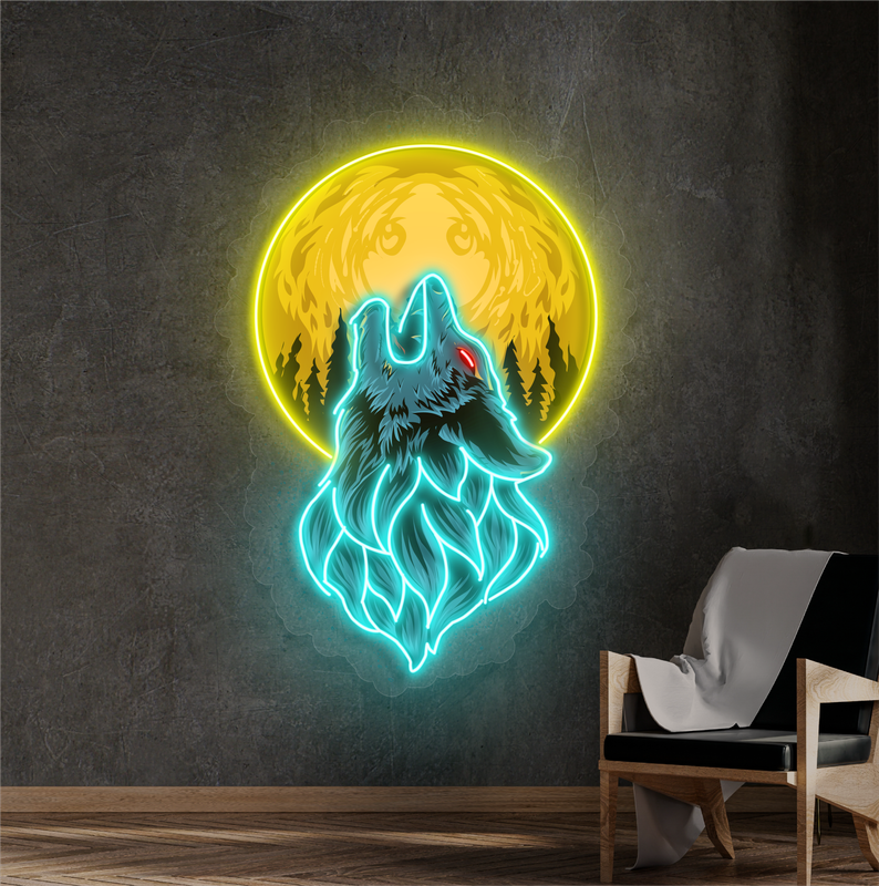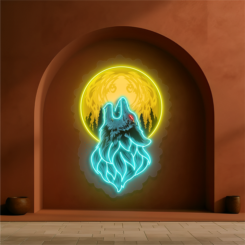 Moonlit Wolf Artwork Led Neon Sign