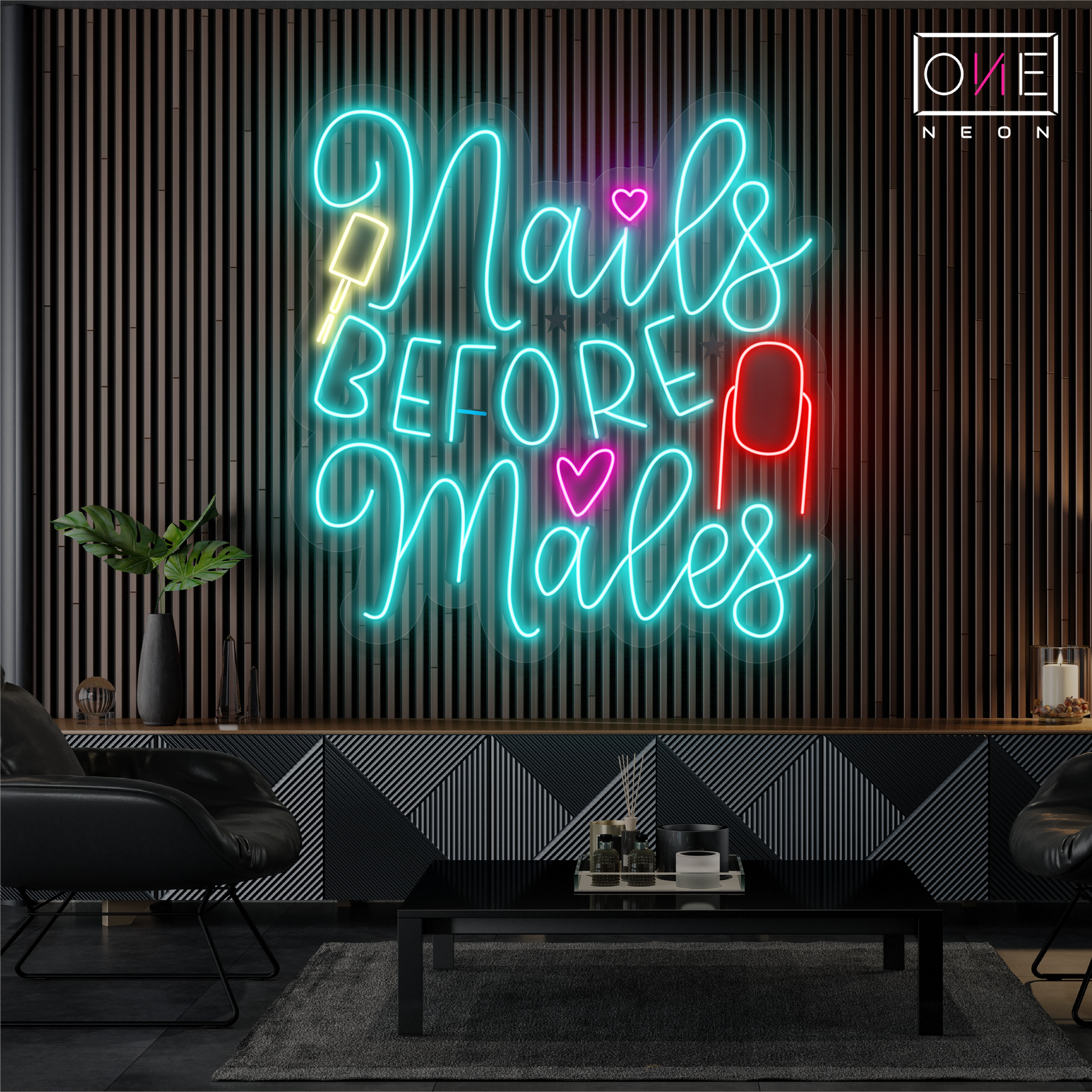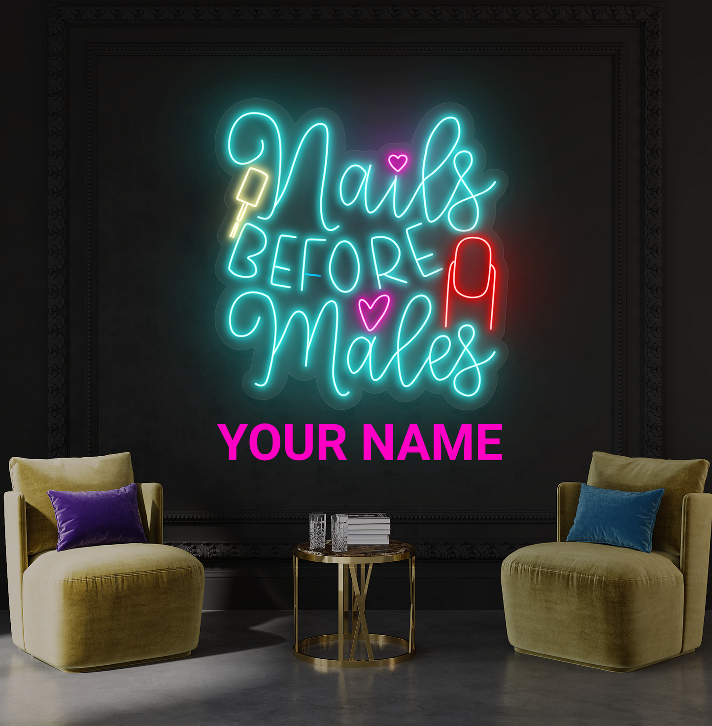 💅 Nails Before Males 💖 – A bold statement for every beauty studio! Perfect for hair salons, nail bars, makeup studios, and any place that celebrates self-care and glam ✨. This neon sign adds a pop of personality, giving your space that Instagram-worthy glow 📸. Let your clients know that beauty comes first! 💄💇♀️