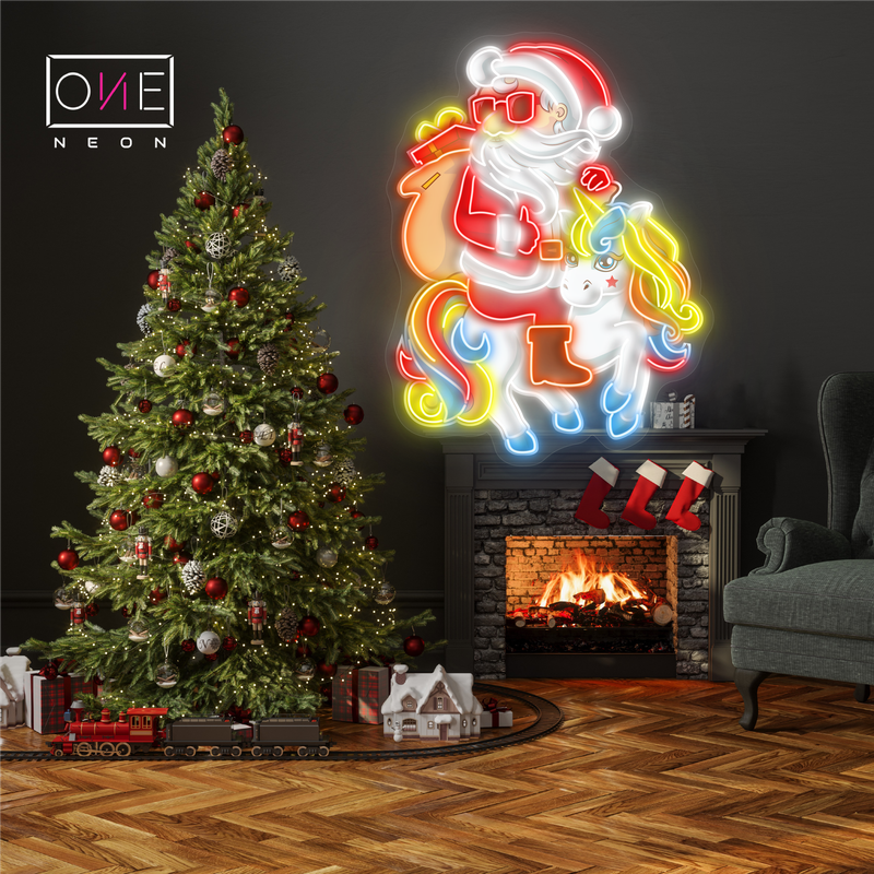 Santa and the Unicorn Christmas Artwork Led Neon Sign