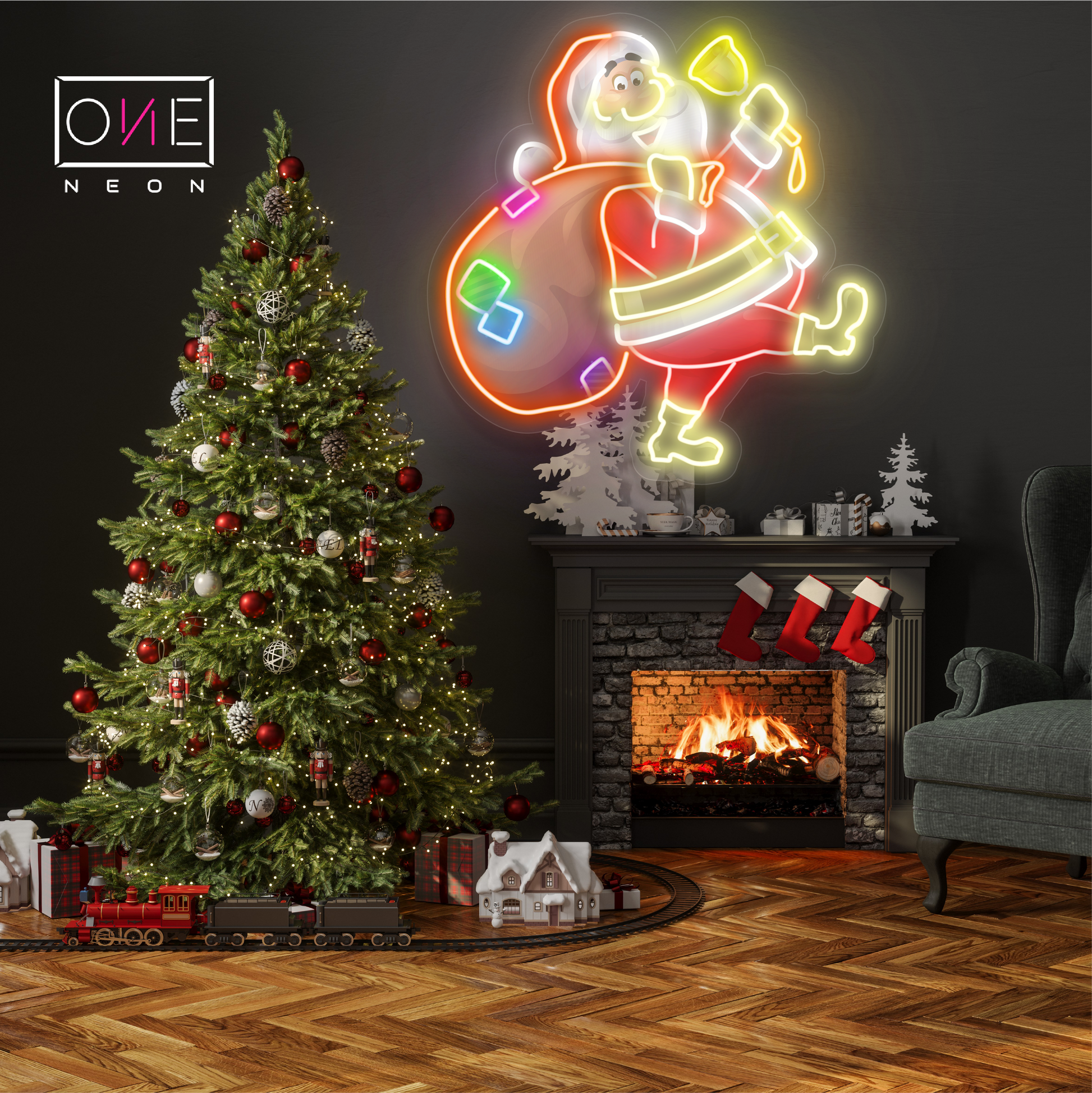 🎅✨ Santa's Joyful Journey Artwork LED Neon Sign ✨🎄