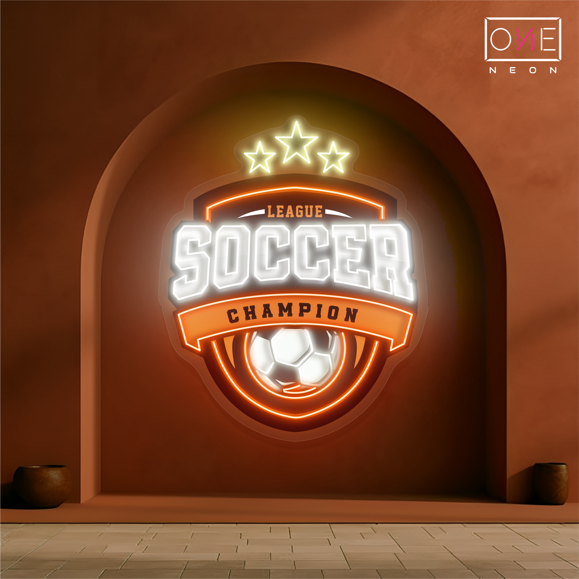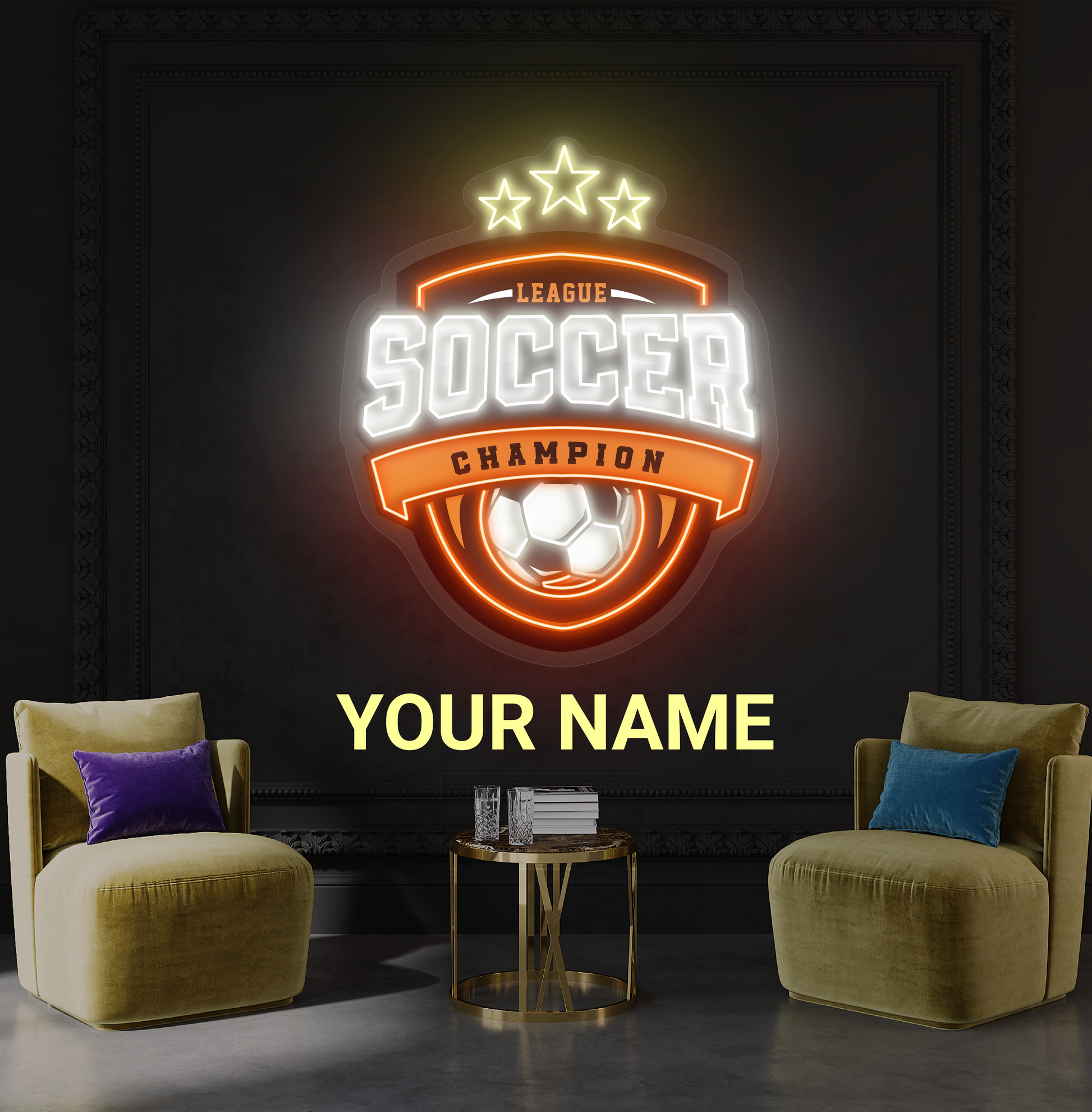 Show your passion for the beautiful game with this vibrant Soccer Champion LED Neon Sign! Perfect for sports bars, game rooms, or any soccer fan's space, this design captures the thrill of victory 🥅⚡. Let your space light up with the energy of champions and celebrate every goal in style! 🌟👑