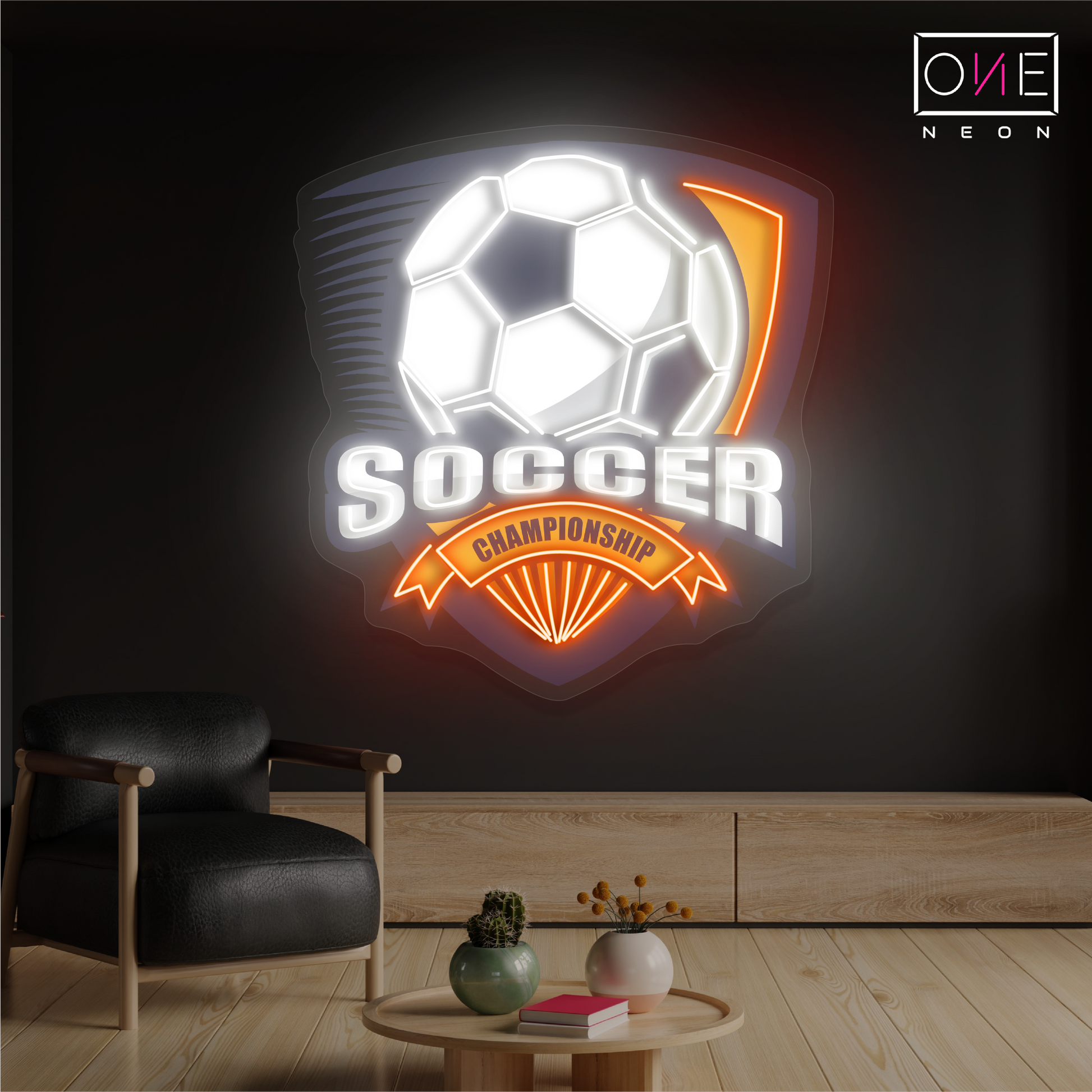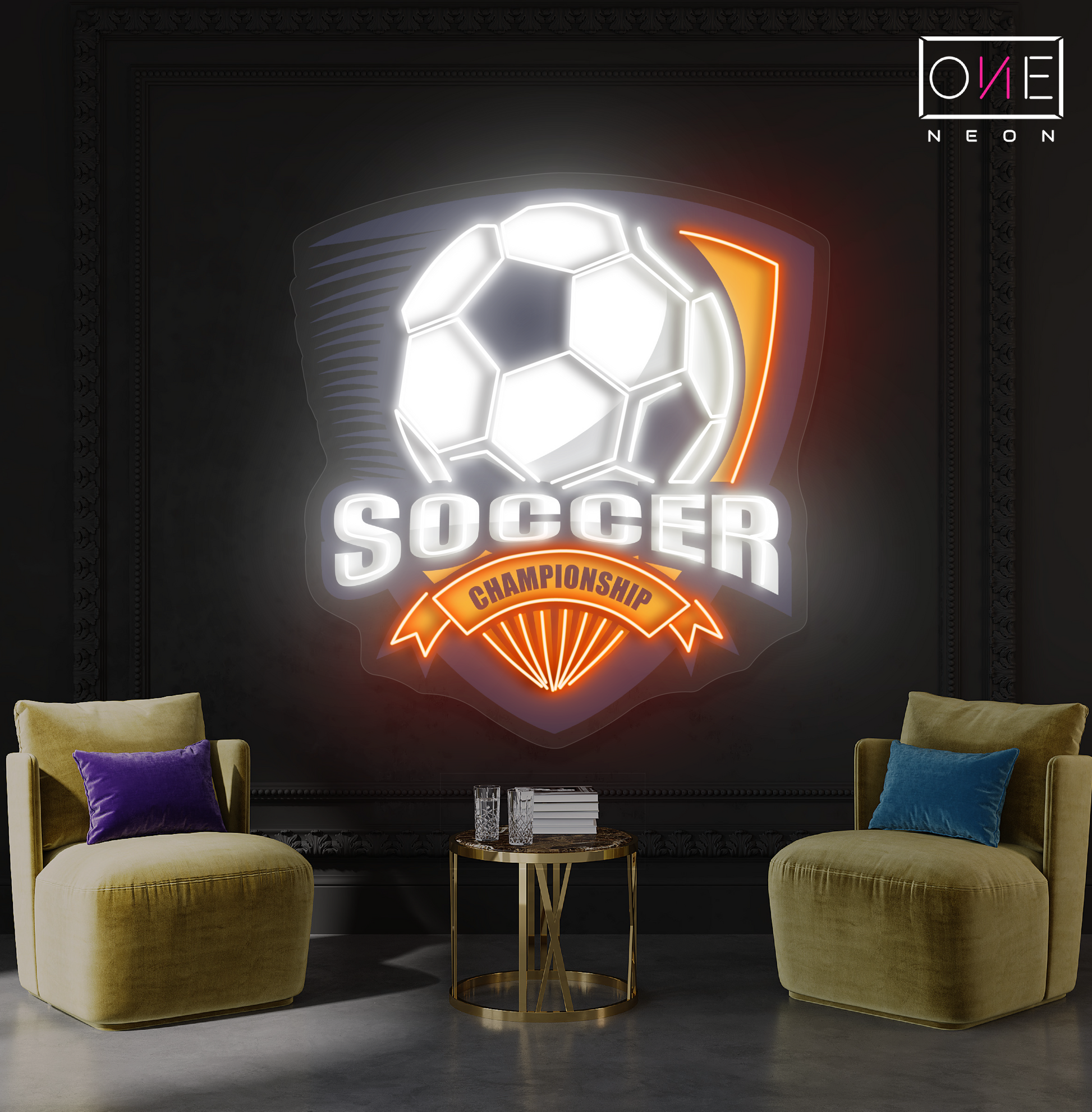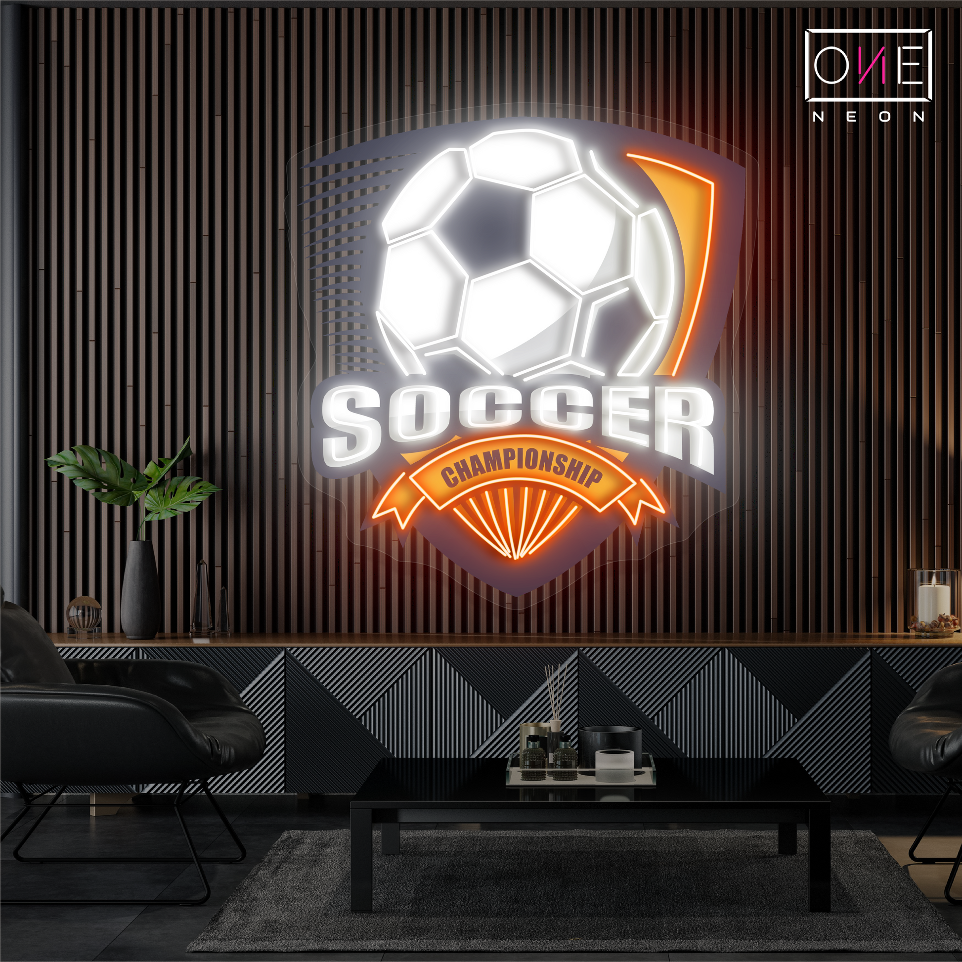 ⚽ Soccer Champion Artwork LED Neon Sign 🏆 is perfect for every football lover! Whether you're decorating a sports bar, man cave, or your personal game room, this vibrant LED sign will light up your space with winning energy. 🌟 Featuring a bold soccer ball design, this neon sign is a true celebration of the sport. 🎯 Score big on style and make your space stand out! 🌍 Suitable for both indoor and outdoor use.
