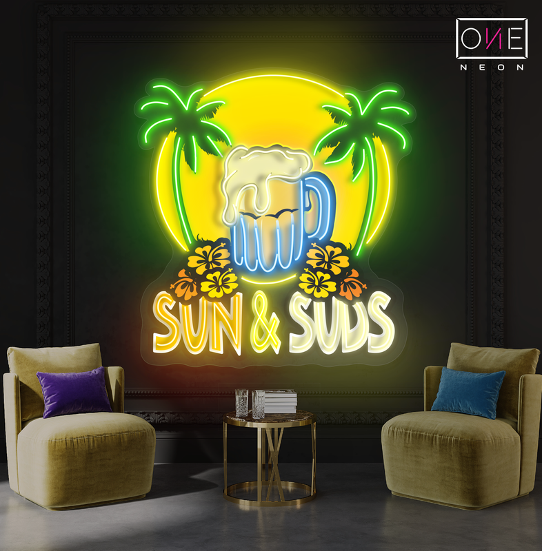 Brighten up your space with the Sun & Suds Artwork LED Neon Sign 🌞🍻! Perfect for bars, restaurants, or home decor, this eye-catching sign combines a fun sun design with beer-inspired elements, creating a vibrant, warm glow. Built to last with premium LED lights, it’s energy-efficient, easy to install, and brings a unique ambiance to any setting. Make a bold statement and light up the good times! ✨💡