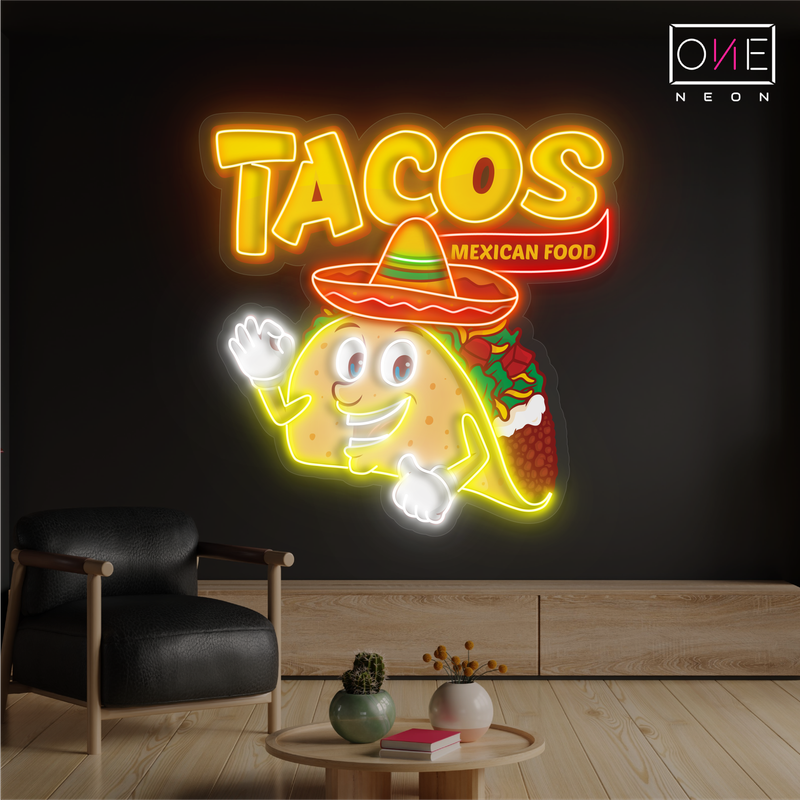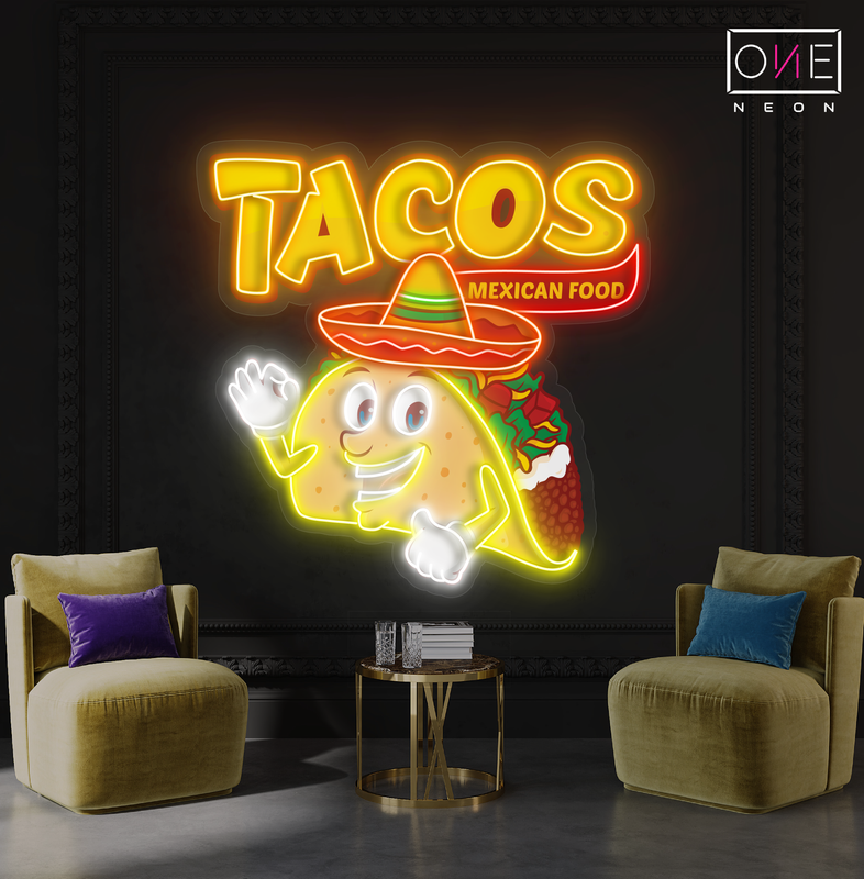 🌮🎨 Tacos Mexican Food Artwork LED Neon Sign 🌟