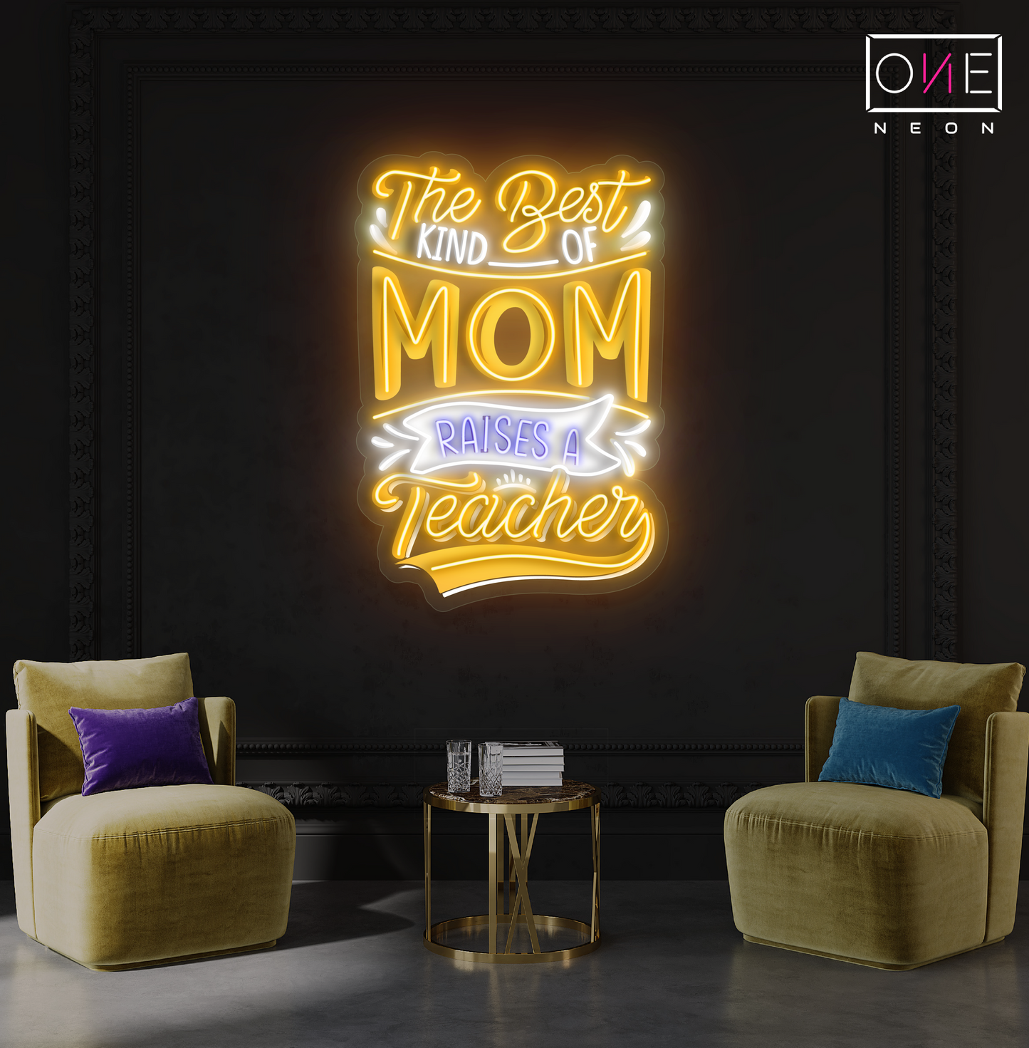 The Best Kind of Mom Raises a Teacher Artwork Led Neon Sign