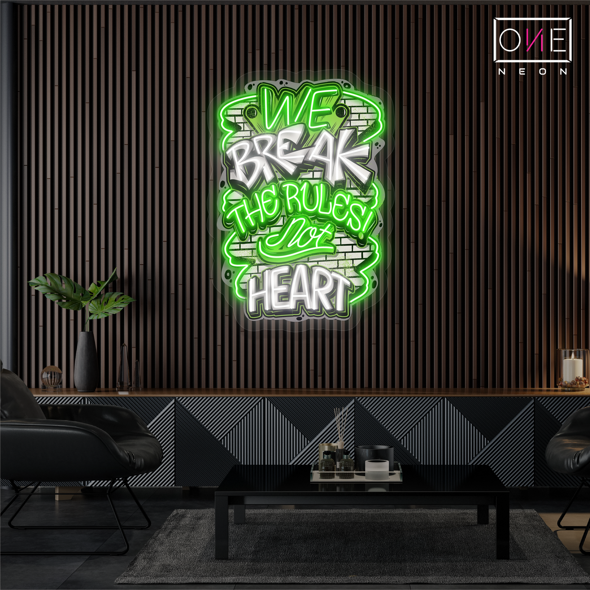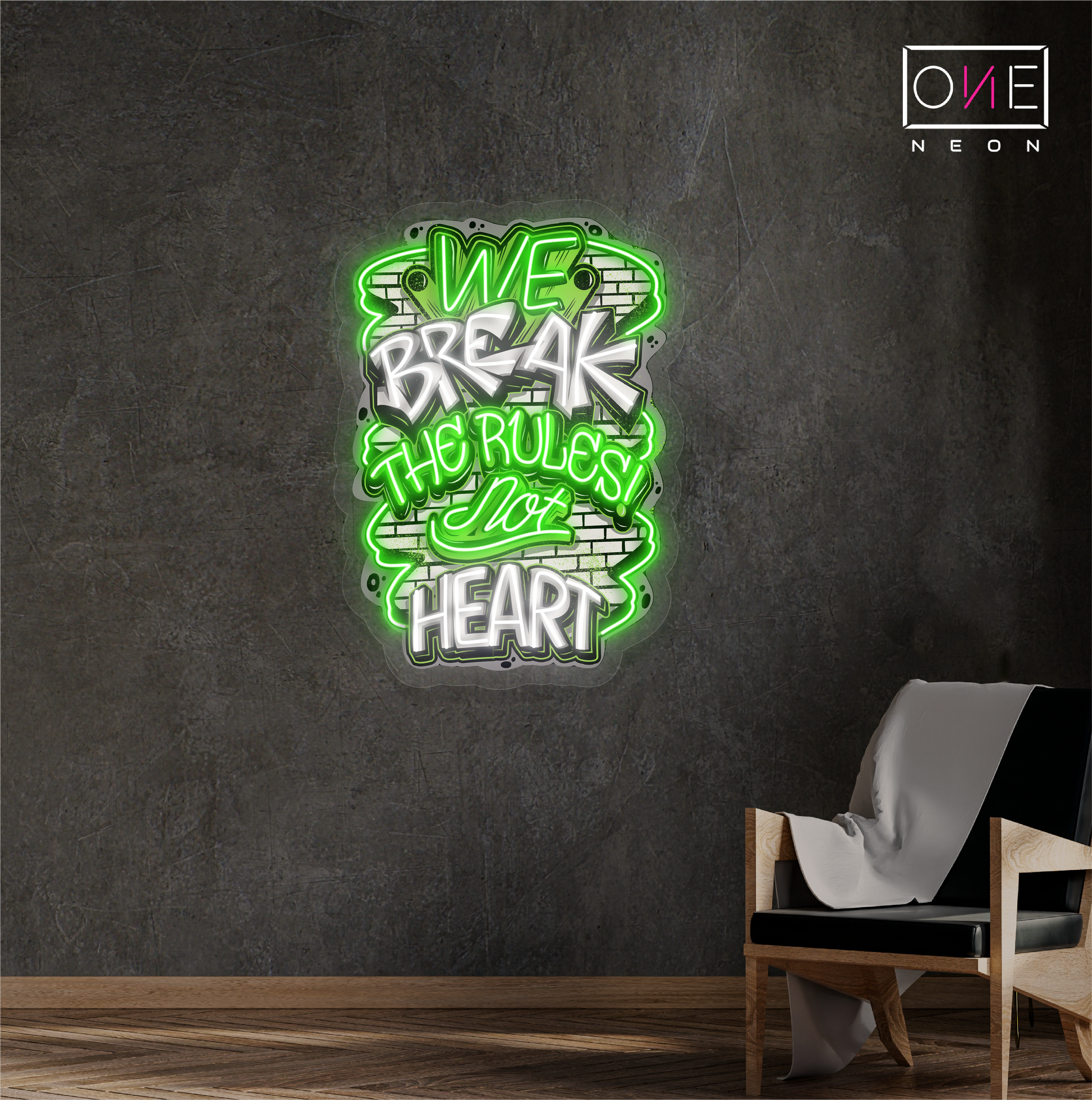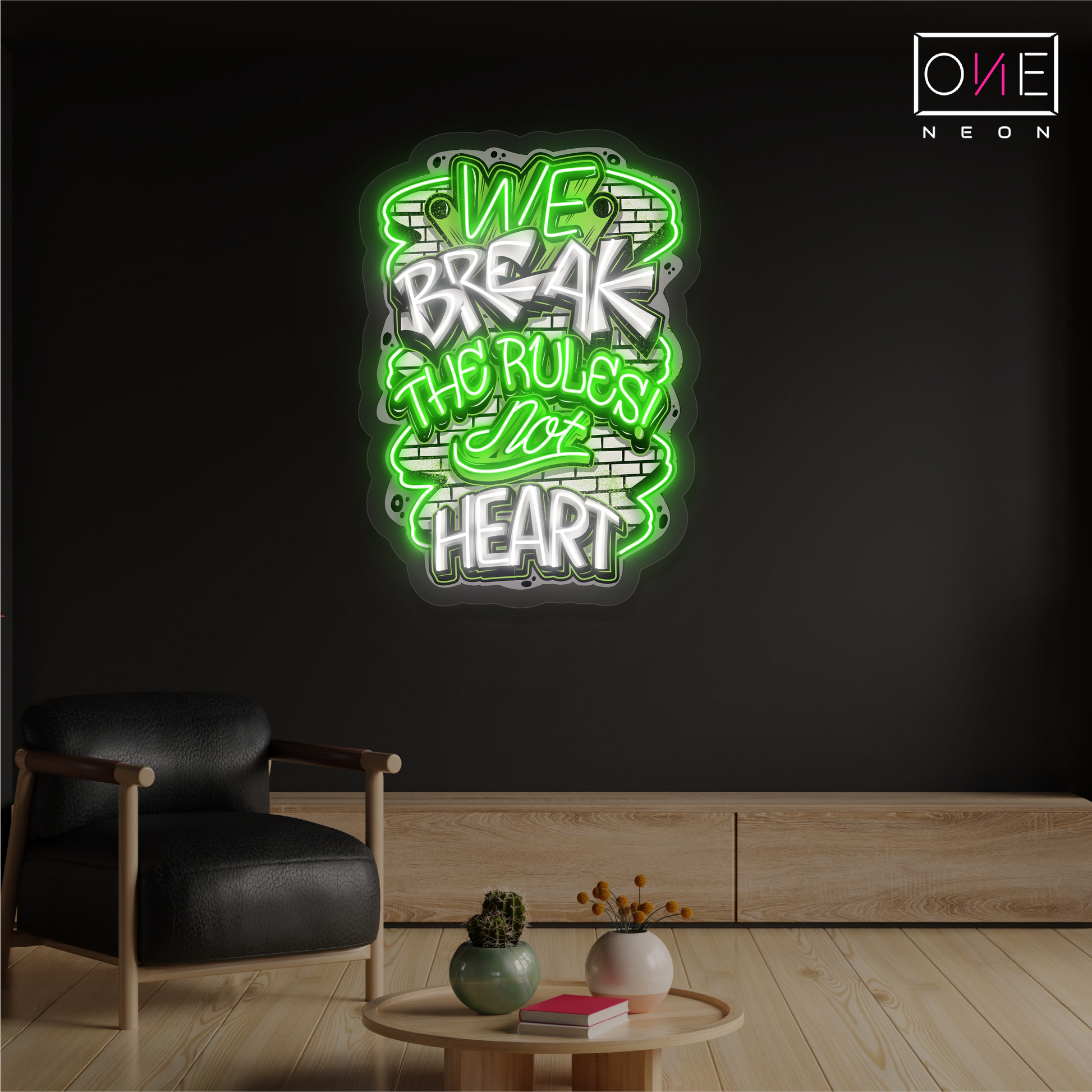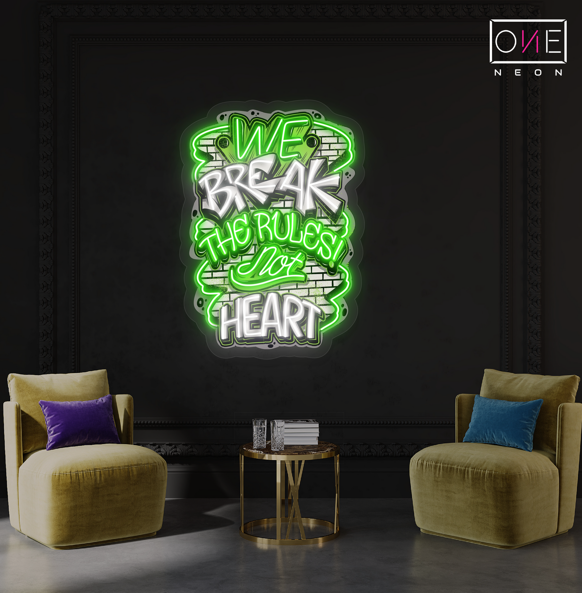 We Break The Rules Not Heart Artwork Led Neon Sign